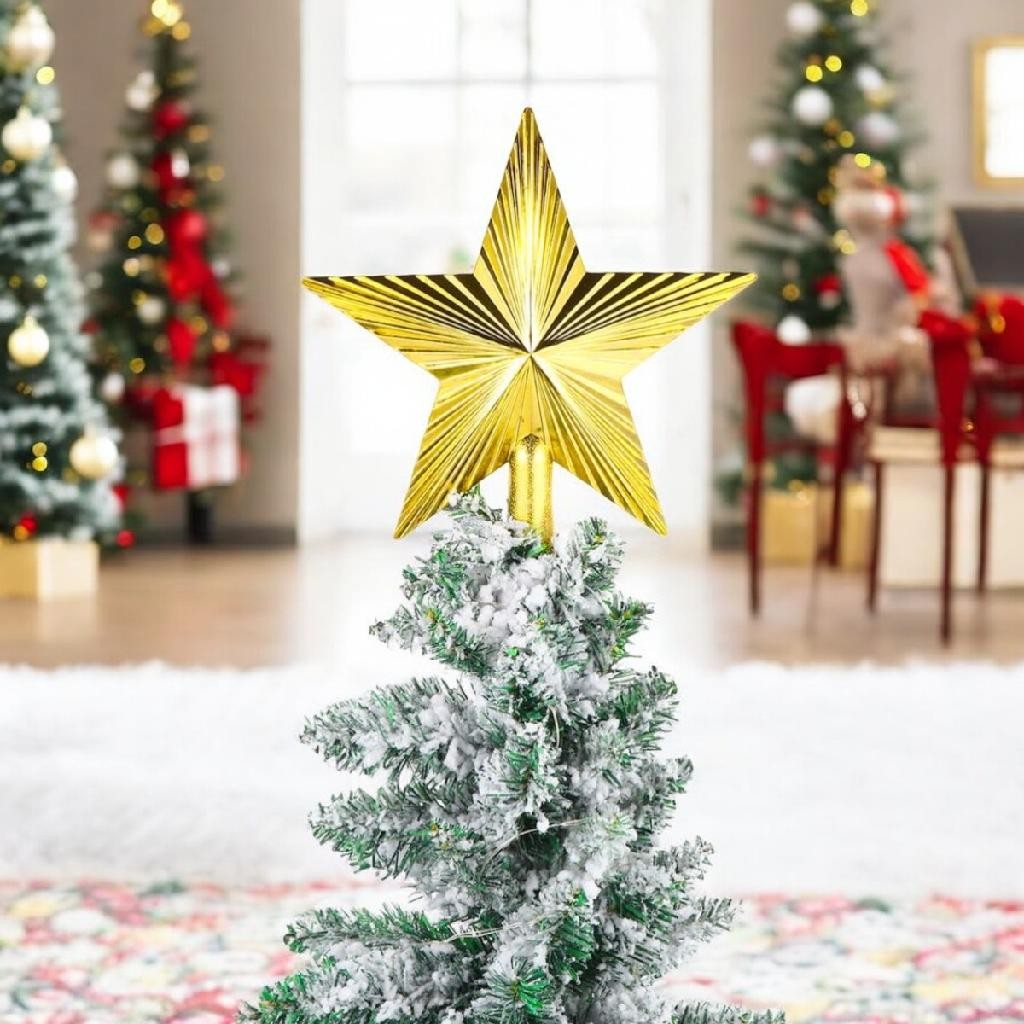 Estrela Ponteira Árvore Natal Enfeite Natalino Dourado 14cm
