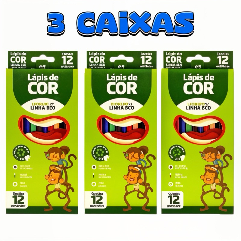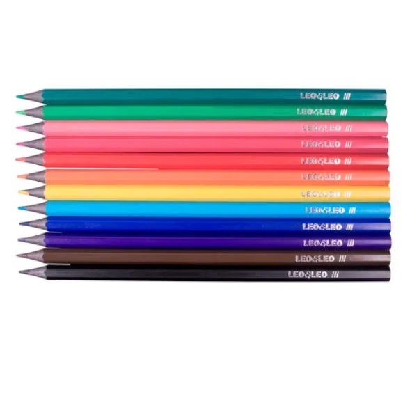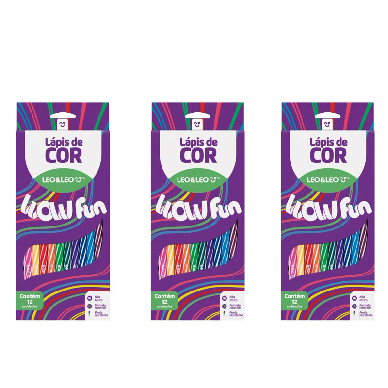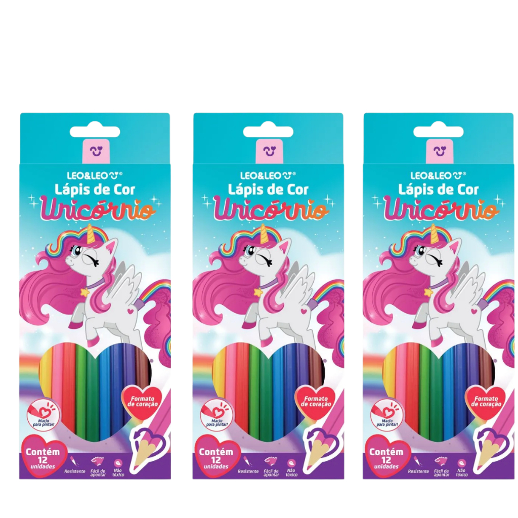 KIT 3 Caixa Lápis De Cor 12 Cores Grande Leo&leo