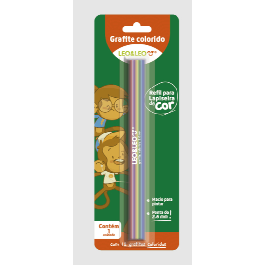 LAPISEIRA DE COR/GRAFITE COLORIDO 2.6,12 CORES + APONTADOR +1 REFIL 12 GRAFITES RESERVAS