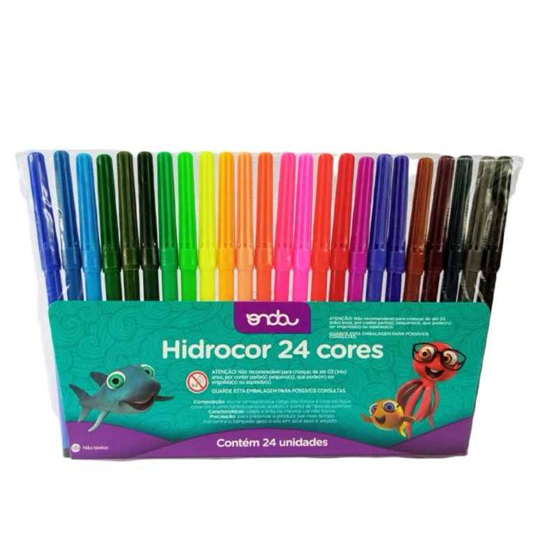 kit Lápis de Cor 24 Cores + Canetinha + Giz 12 Cores - Caneta Hidrográfica 24 cores