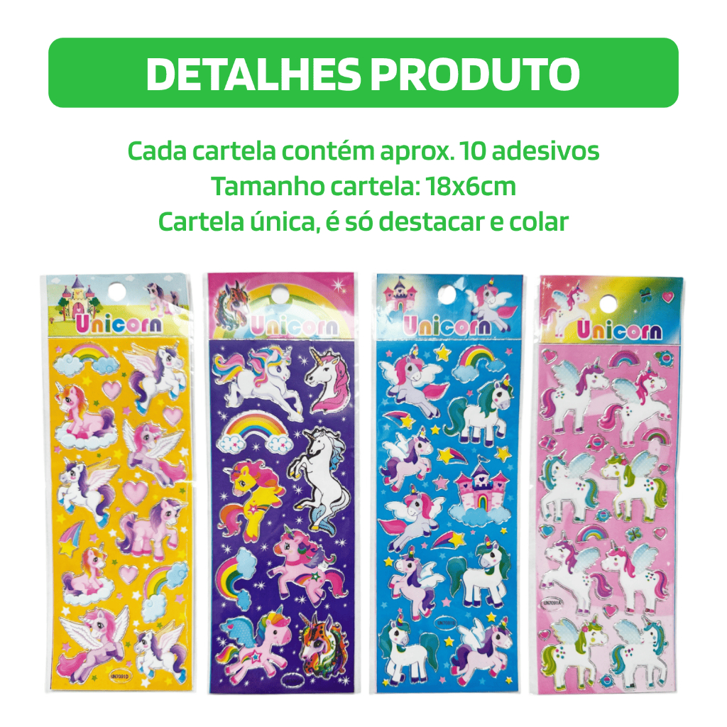 10/20/40 Cartelas Unicórnio Adesivo Infantil Menina Lembrancinha Escola Criança Sticker Figurinha