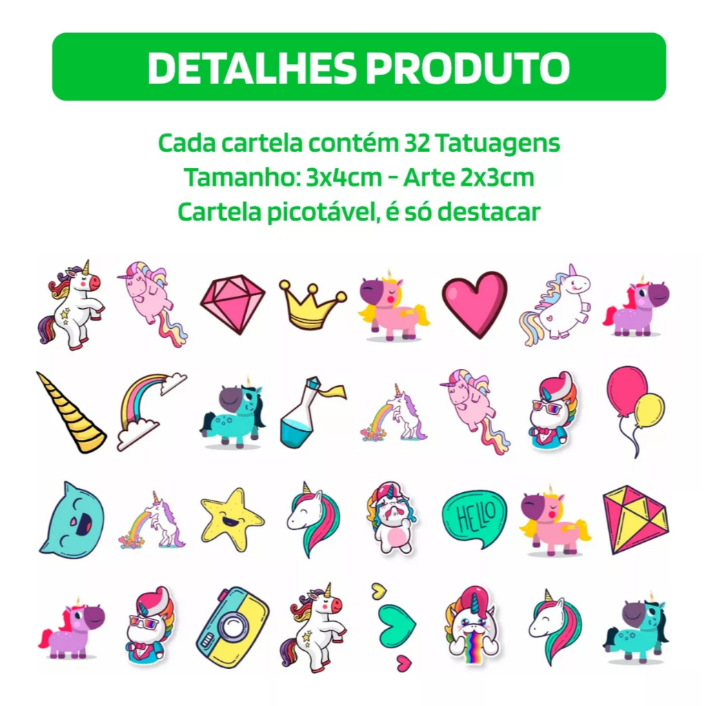 32/160/256 Tatuagem Infantil Temporária Unicórnio Estrela Arco-Íris Menina Criança Festa