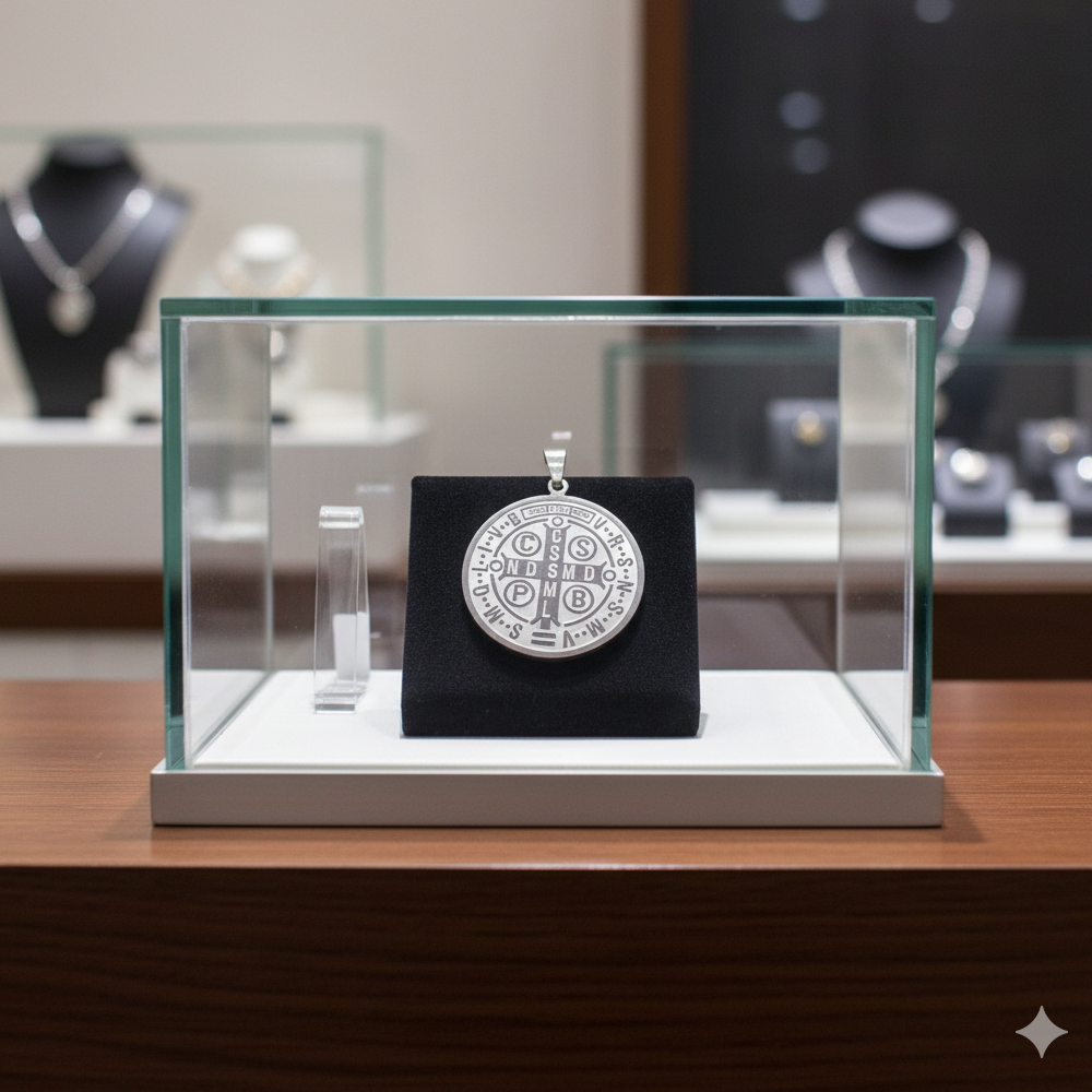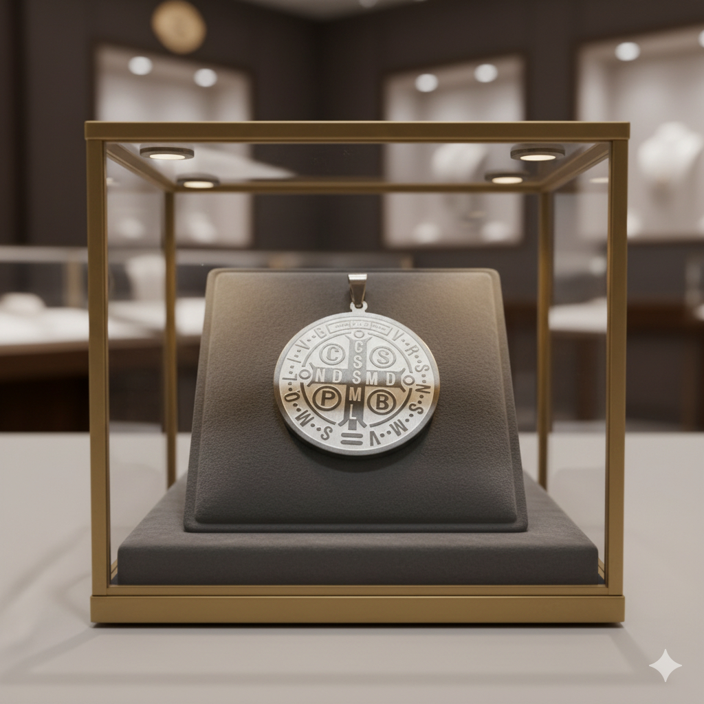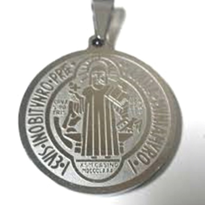 Medalha Pingente São Bento Dupla Face Aço Cirúrgico Prata