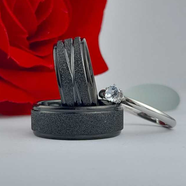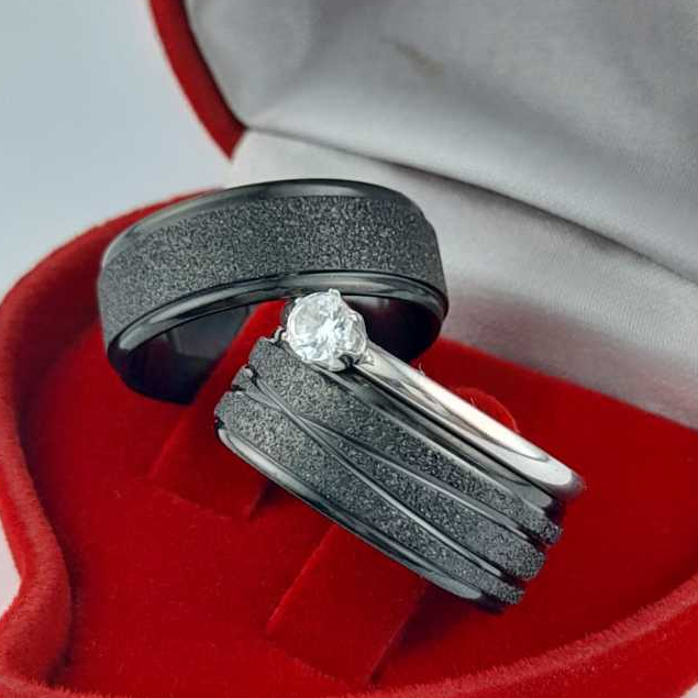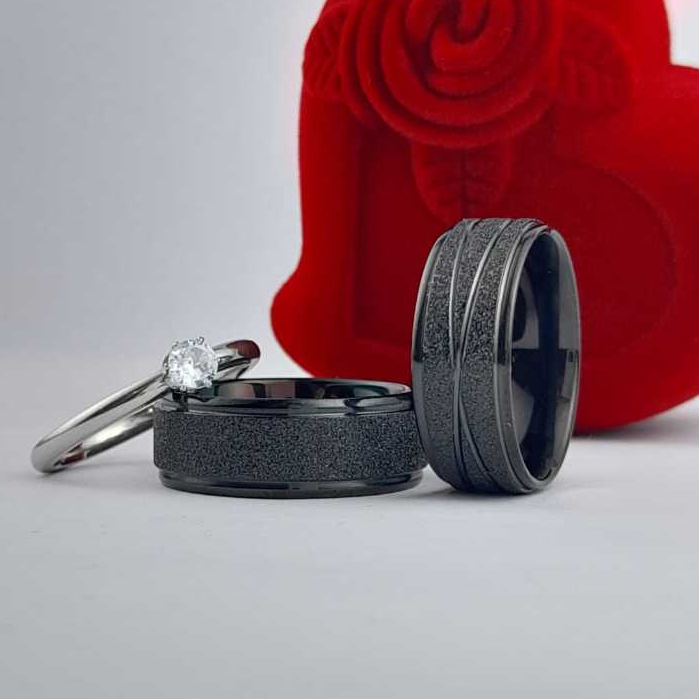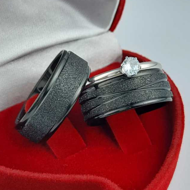 Duas Aliança Diamantada Preta Extra Brilho Feminina Masculina Compromisso Namoro Noivado