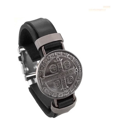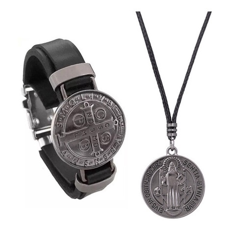 Conjunto Colar Masculino E Pulseira Couro São Bento ref13