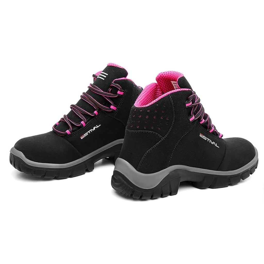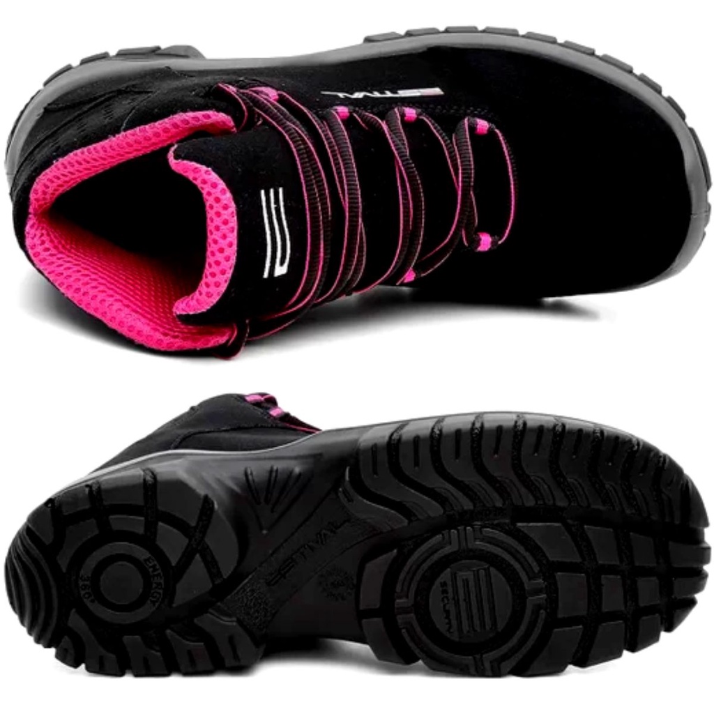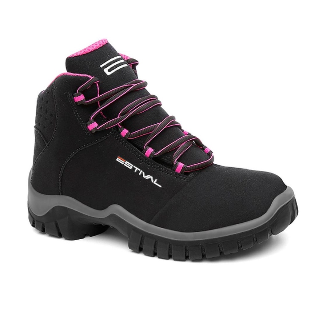 Bota Feminina Estival Bota EPI de Segurança em Microfibra Leve e Confortável Preto com Rosa, EPI com CA