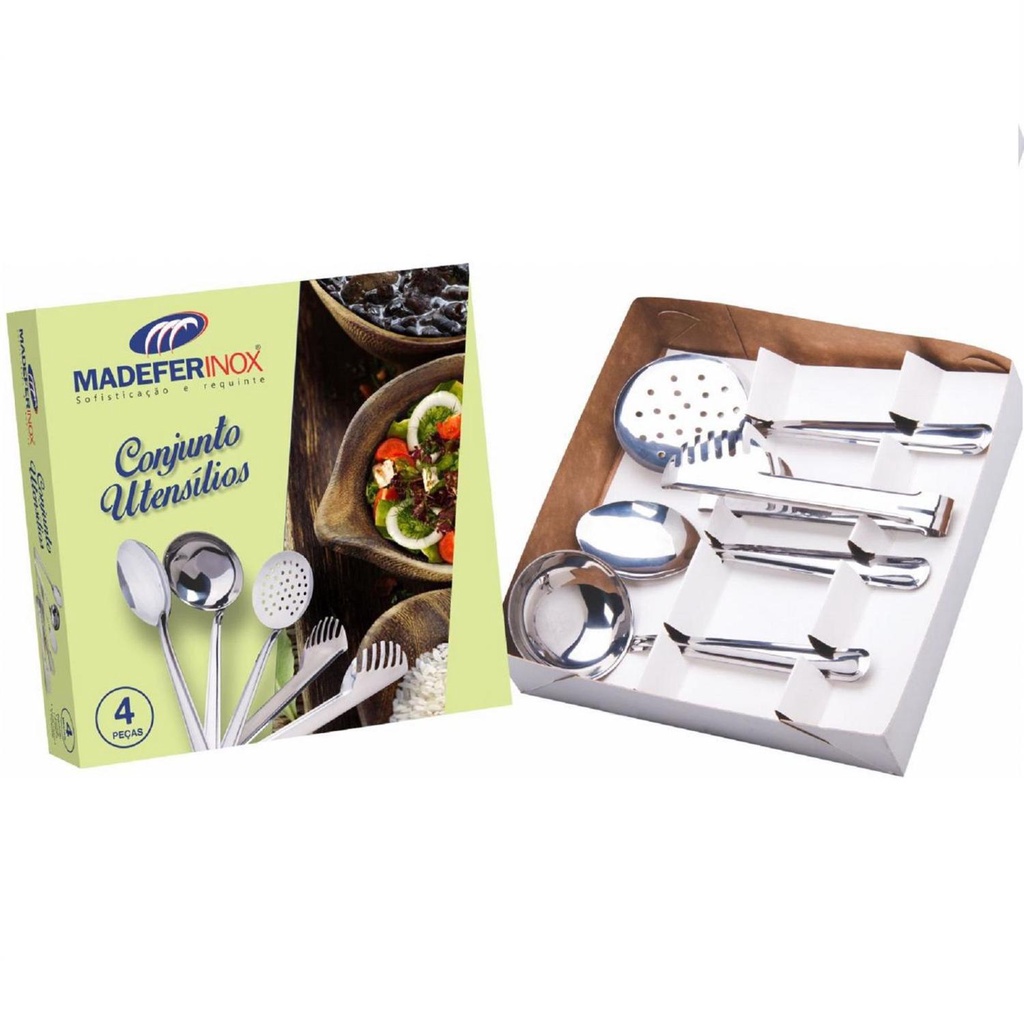 Conjunto Utensilios Cozinha em Inox 4 Peças 0809 Madefer