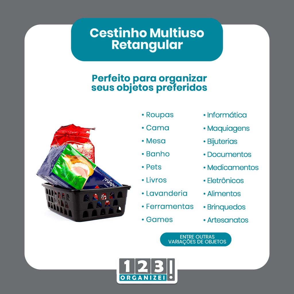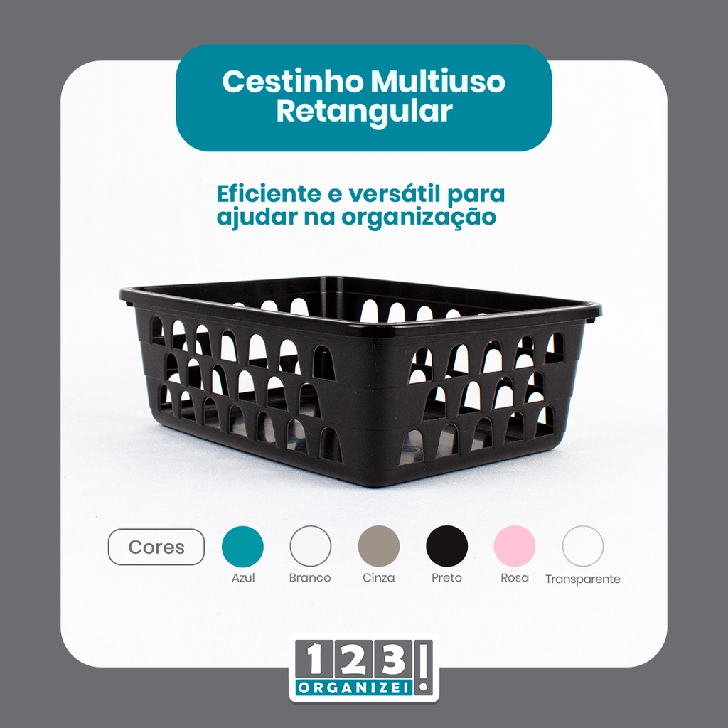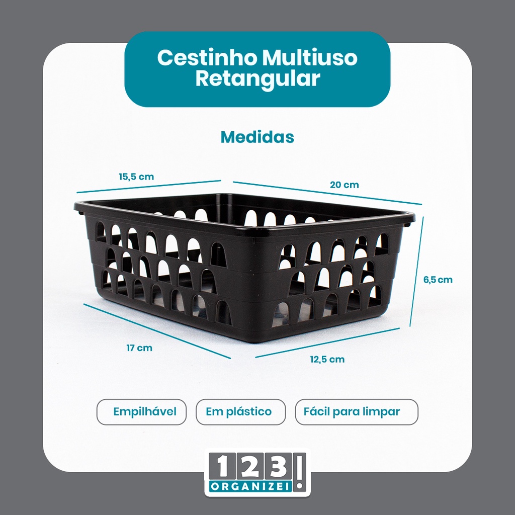 Kit 4 Cestos Multiuso Organizador Médio Preto 20x15,5x6,5Cm