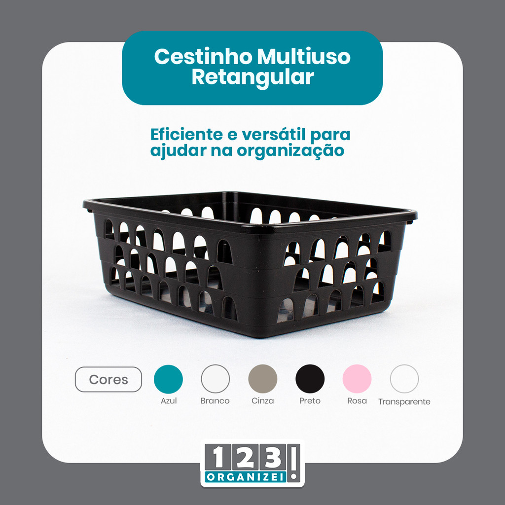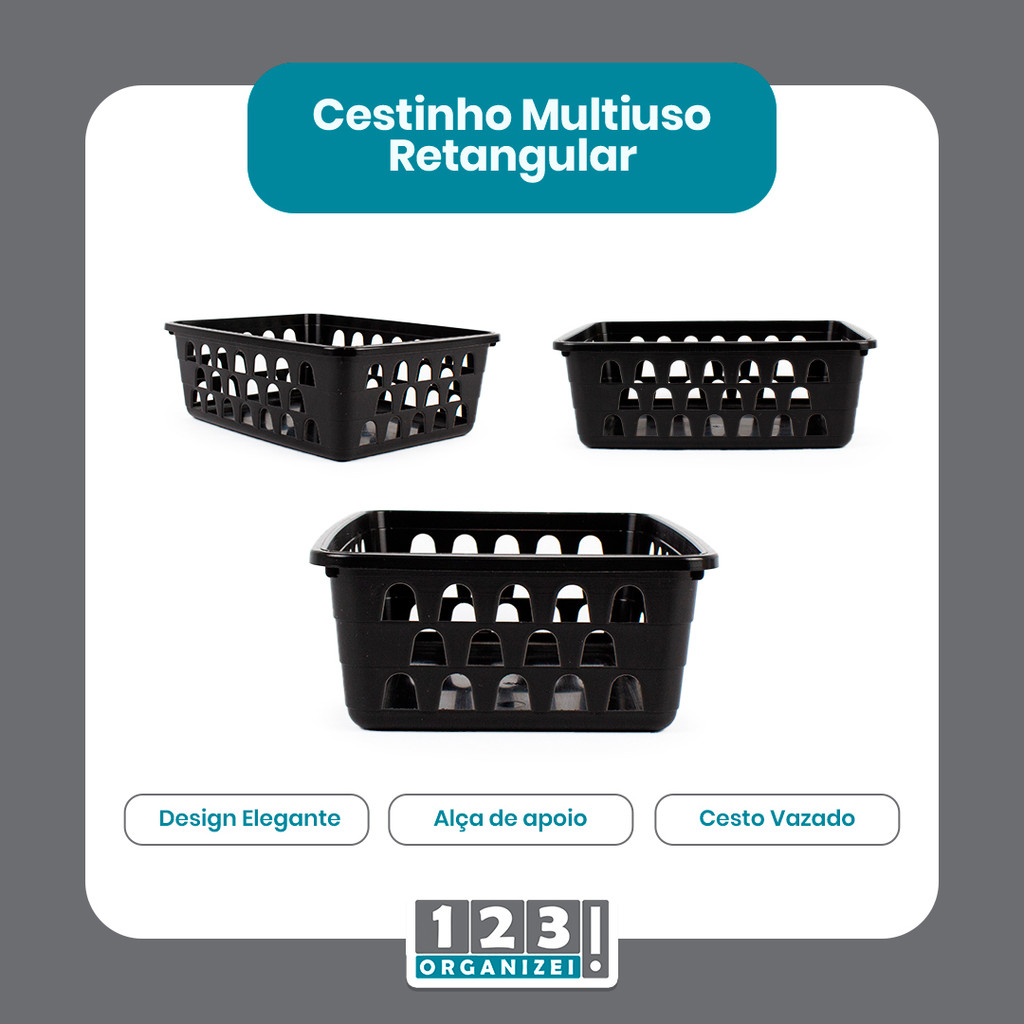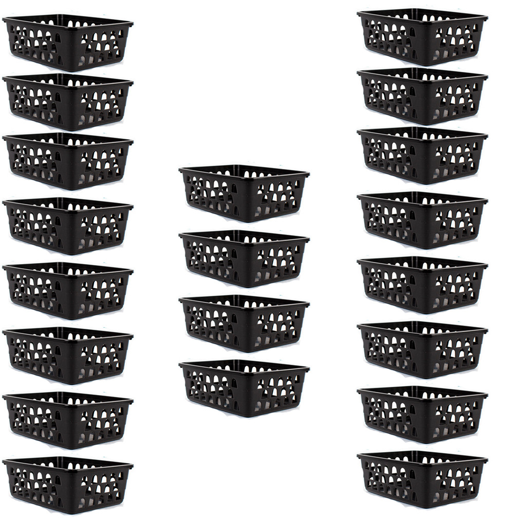 Kit 24 Cestos Organizador Multiuso Médio 20x15,5x6,5Cm Preto