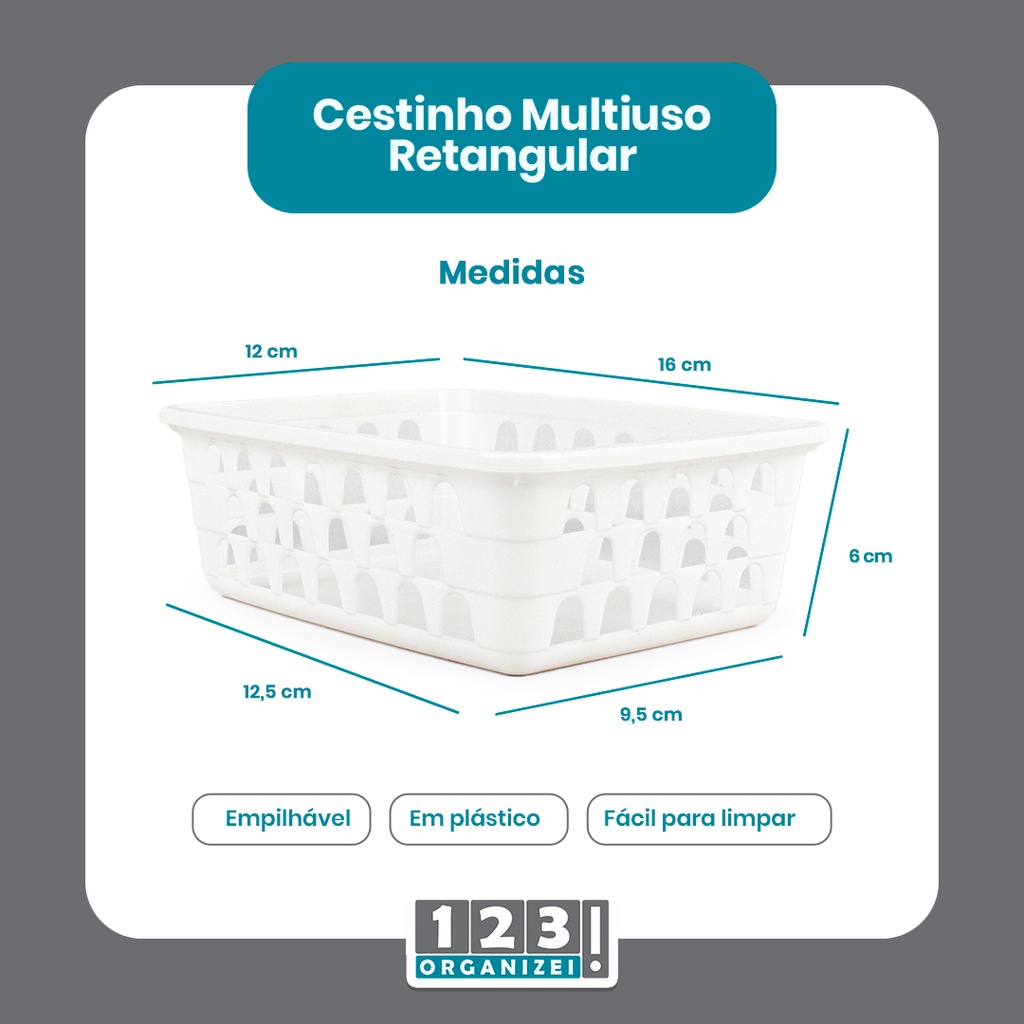 Kit 6 Cesto Organizador 16x12x6Cm Branco +10 Cabide Infantil 123Organizei