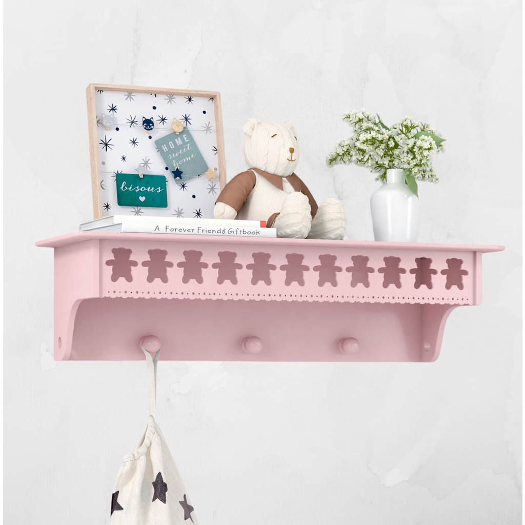 Prateleira com Cabideiro Ursinho Teddy em MDF