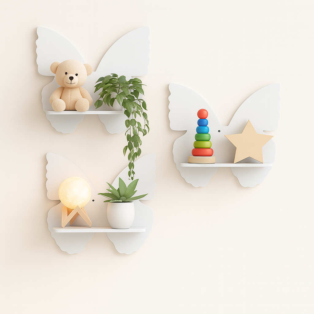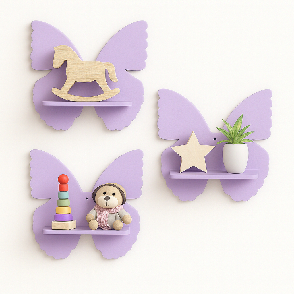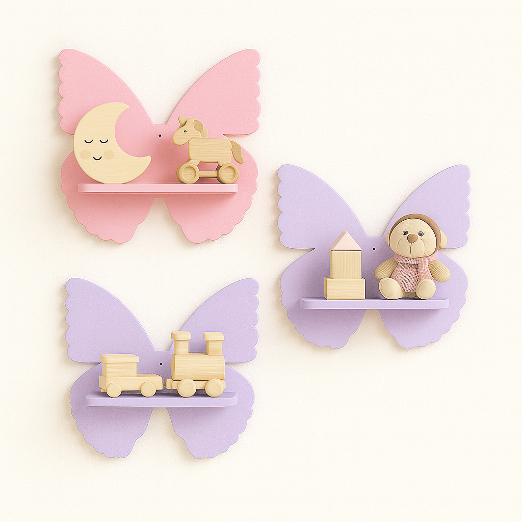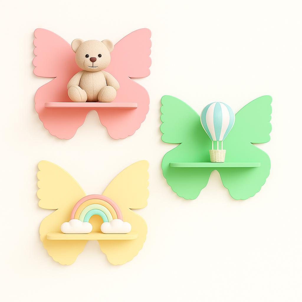 Kit Prateleira Borboleta Nicho Borboleta em MDF 3 peças