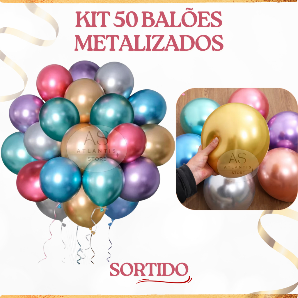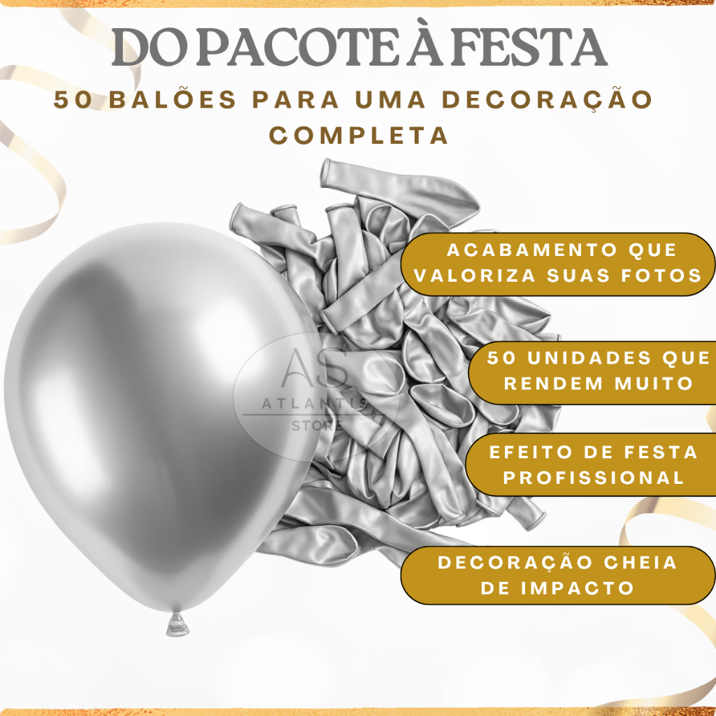 50 Balão Bexiga Metalizada Nº 10 Decoração De Festa Metalizada Aniversário Casamento Evento Painel