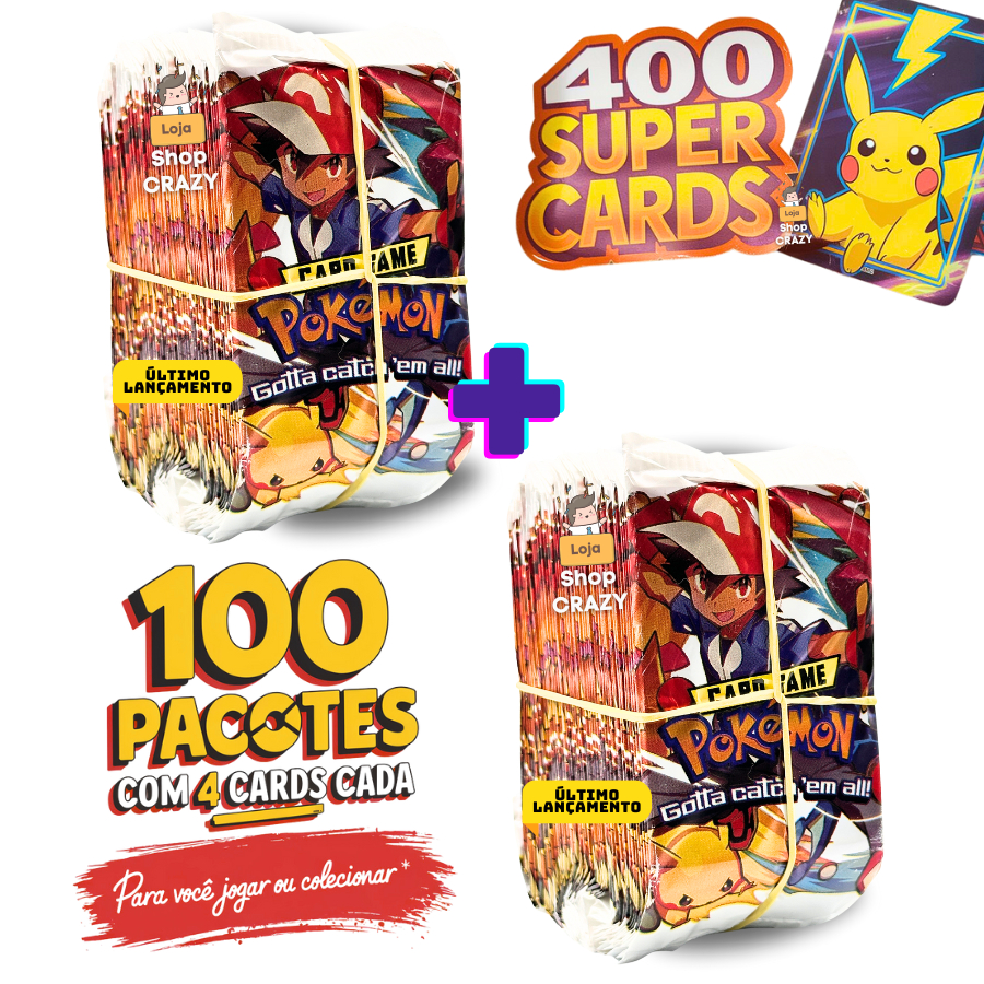 100 Pacotinhos POKEGO! | São 400 CARDS | Bafo ou Colecionar 2 Pacotões de Cards