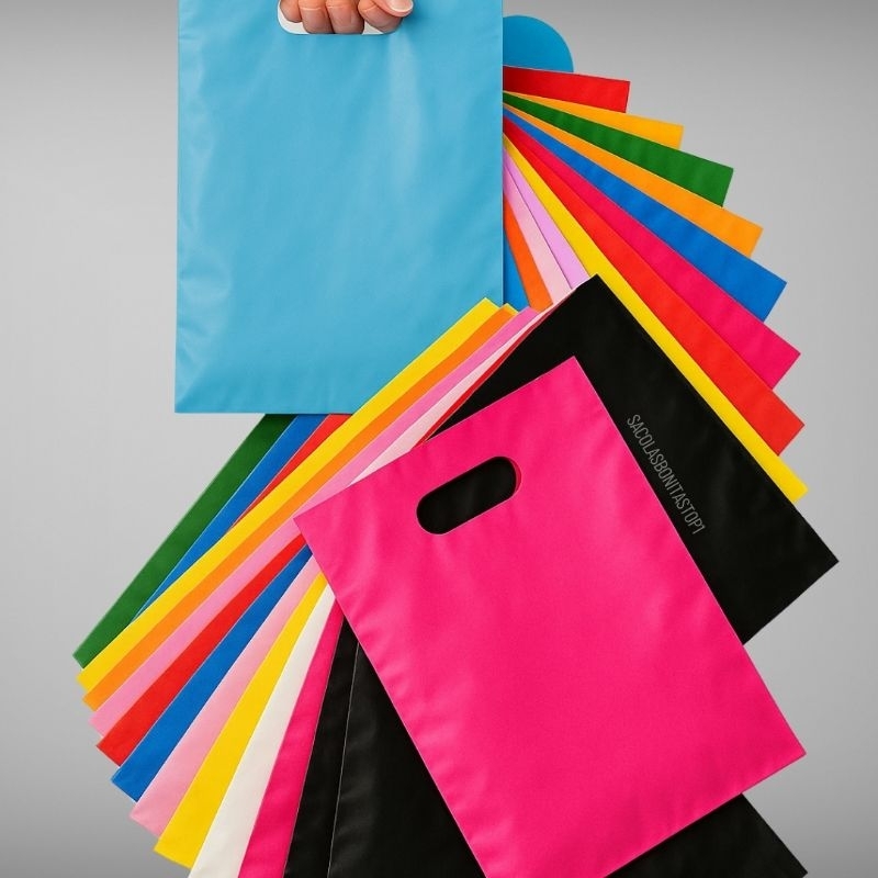 100 Un Sacolas Plasticas Boca De Palhaço Para Loja 20x30 - 30x40 - 40x50 - Sacolas Coloridas Sheik Sacolas