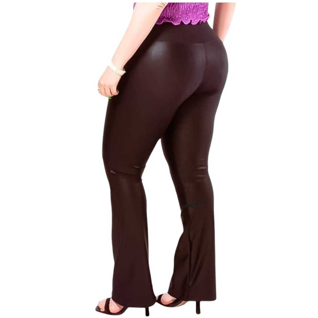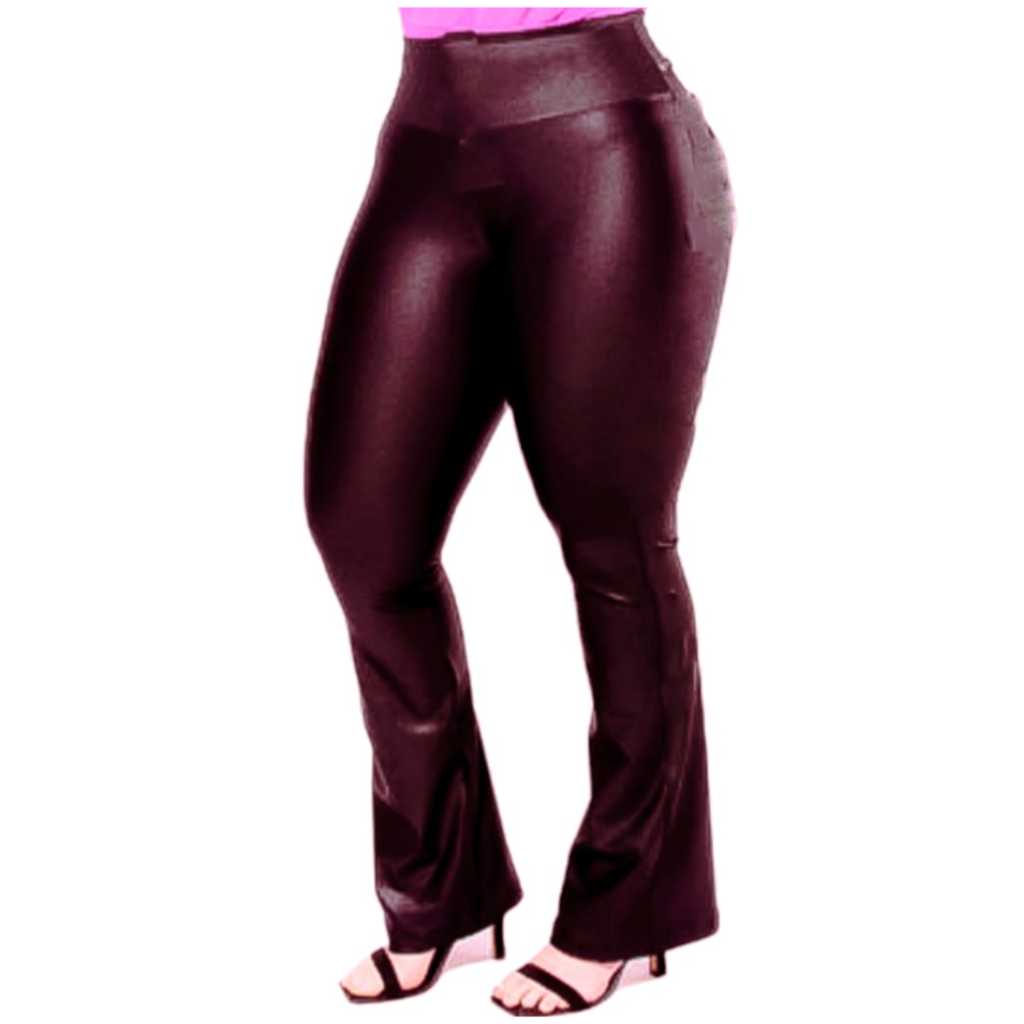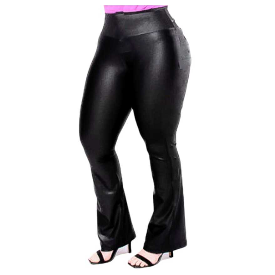 Calça Flare Bailarina Plus Size Em Cirrê Couro Fake Com Brillho Grosso G1 G2 G3 G4