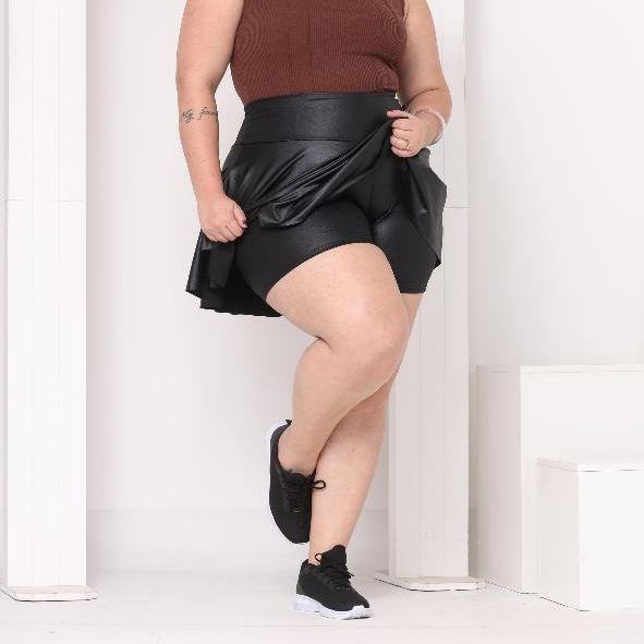 Short Saia Plus Size Cirre Suplex Babado Cintura Alta Academia/festa Conforto E Segurança