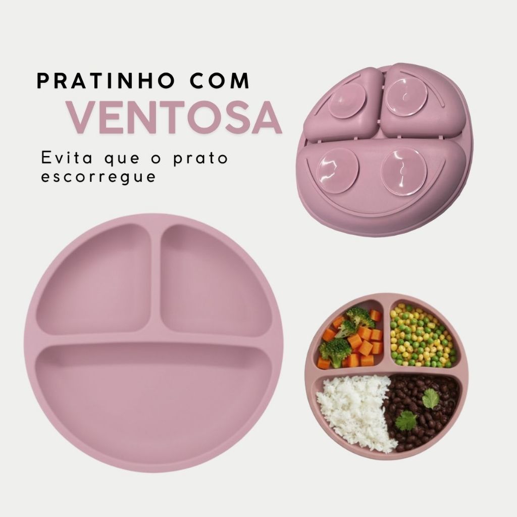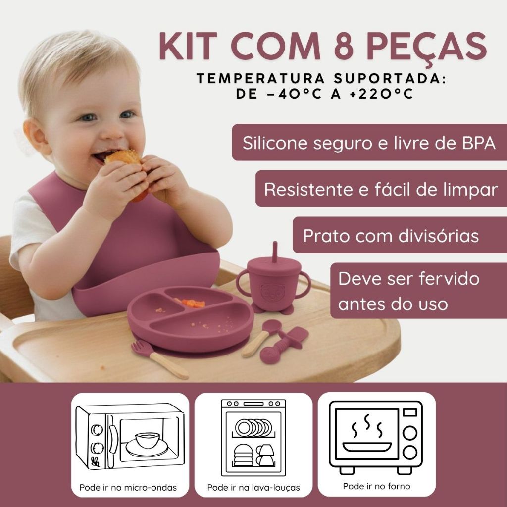 Kit Refeição 8 peças Alimentação do Bebê SiliconeTalheres com Ventosa Canudo Babador Cata migalha