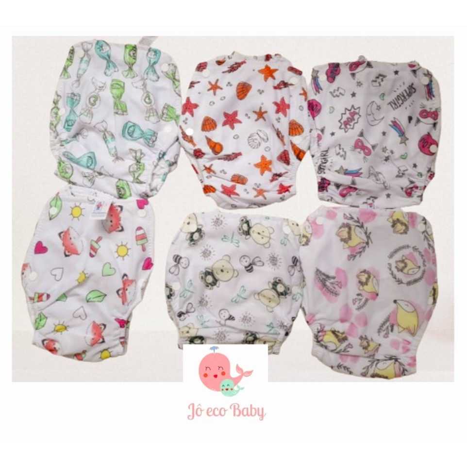 2 fraldas Enxuta Calça Plastica Bebê Menino Menina Lisa Estampada
