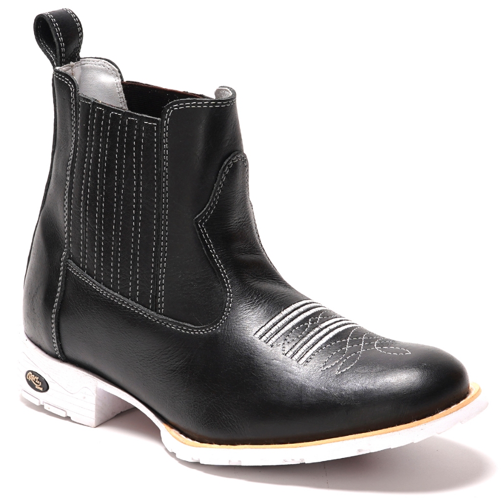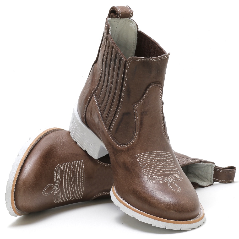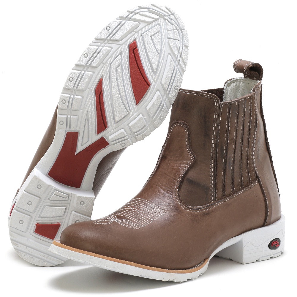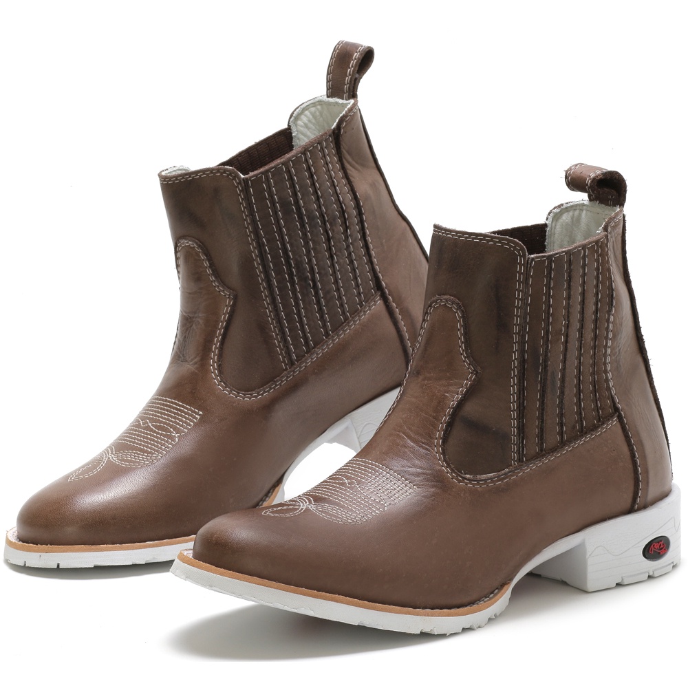 Bota Texana Country Bico Redondo Sola Branca Botina Rhl Em Couro Legítimo