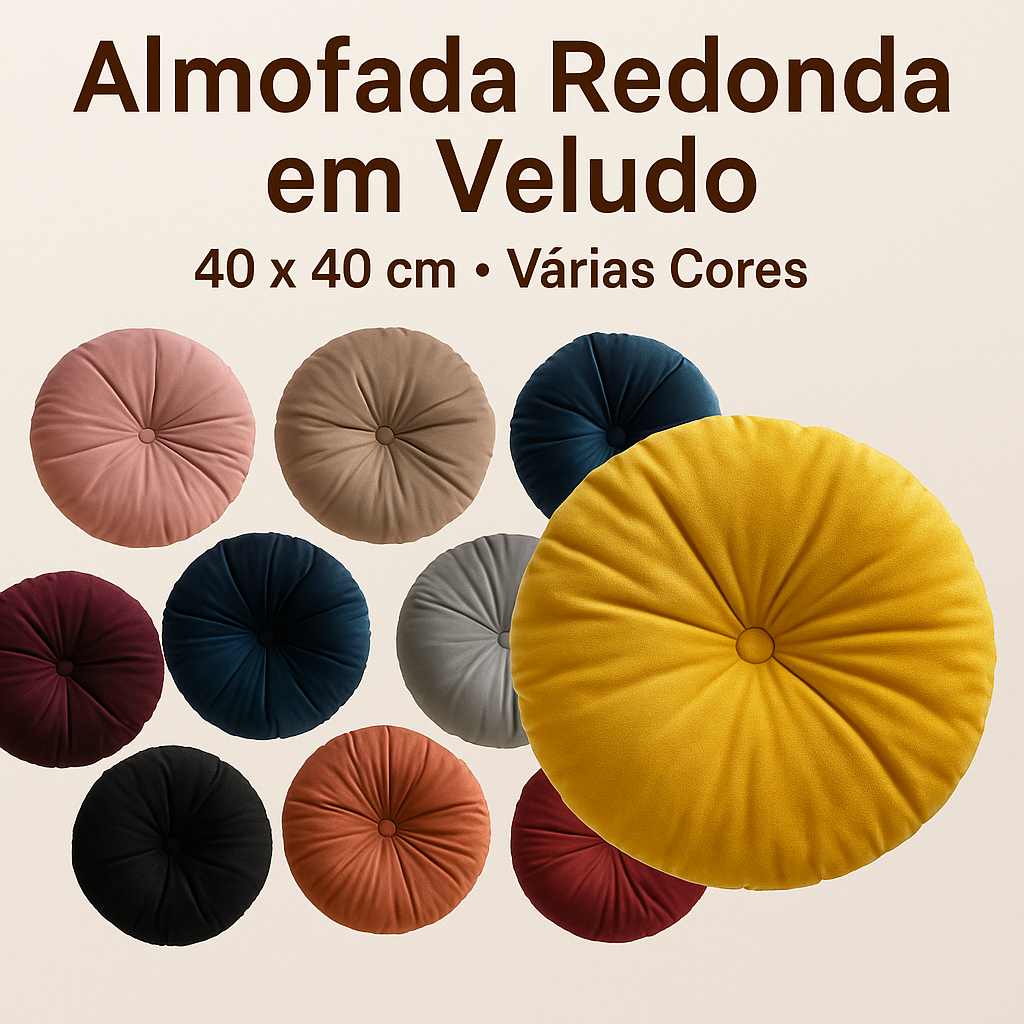 Almofada Redonda em Suede Veludo – 40x40cm | Decoração Sofisticada com Cores Vibrantes