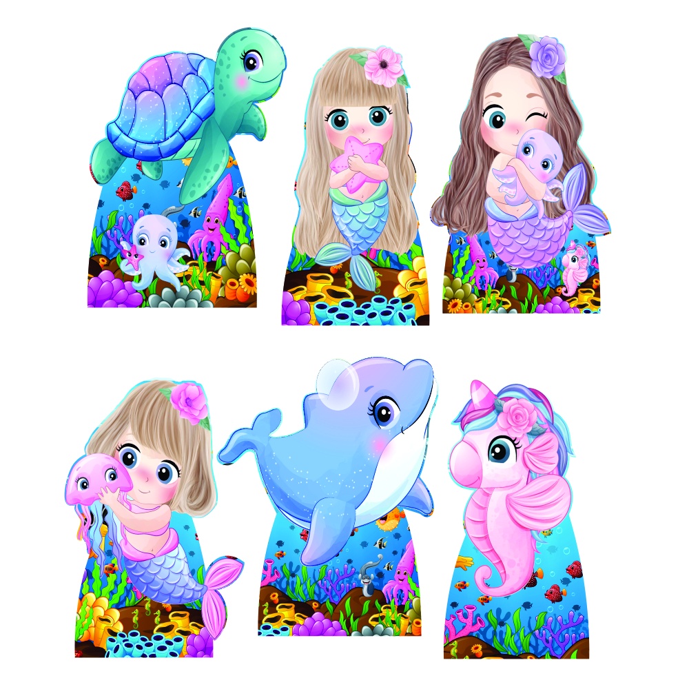 Sereias aquarela Kit 6 Displays De Mesa totens de Decoração Para Festa em Mdf