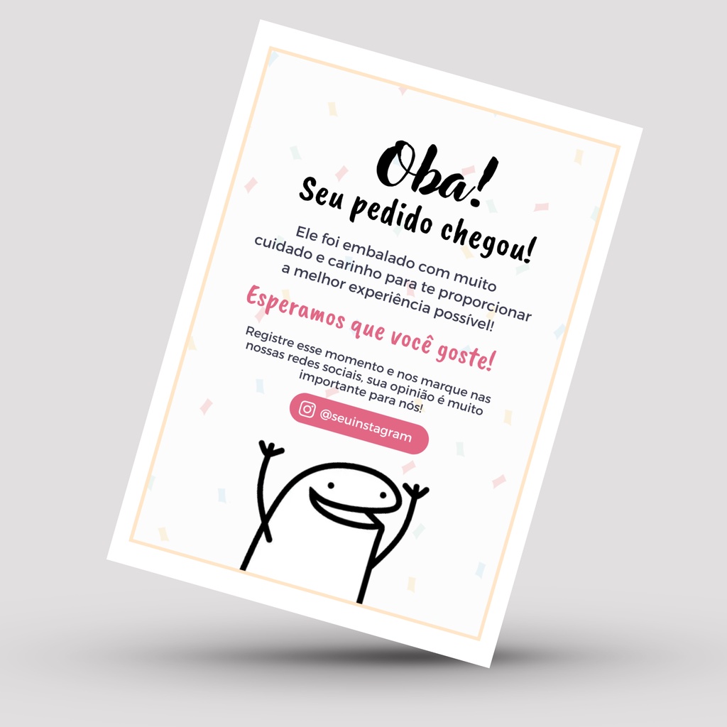 Carta de Agradecimento Personalizada ao Cliente Cartão para Unbox 10x14 para loja e empresa. Flork Oba seu pedido chegou