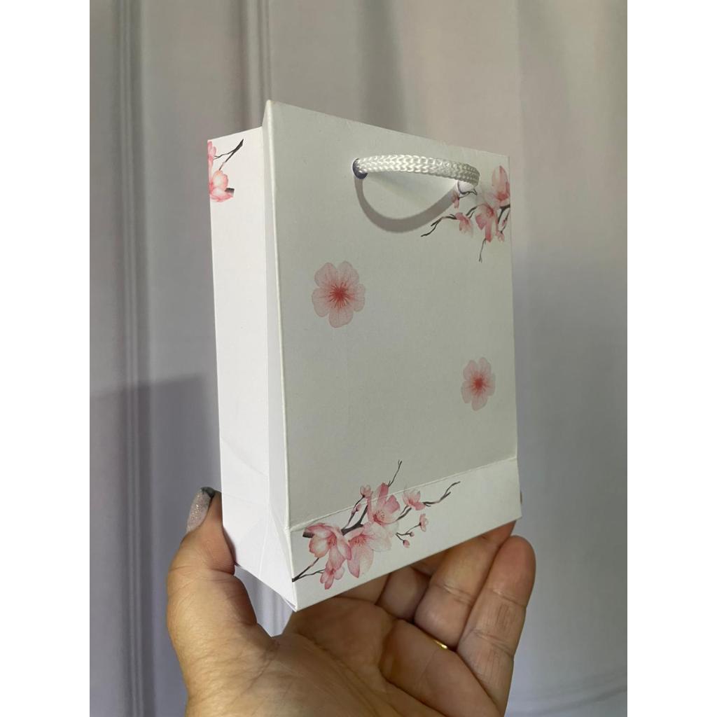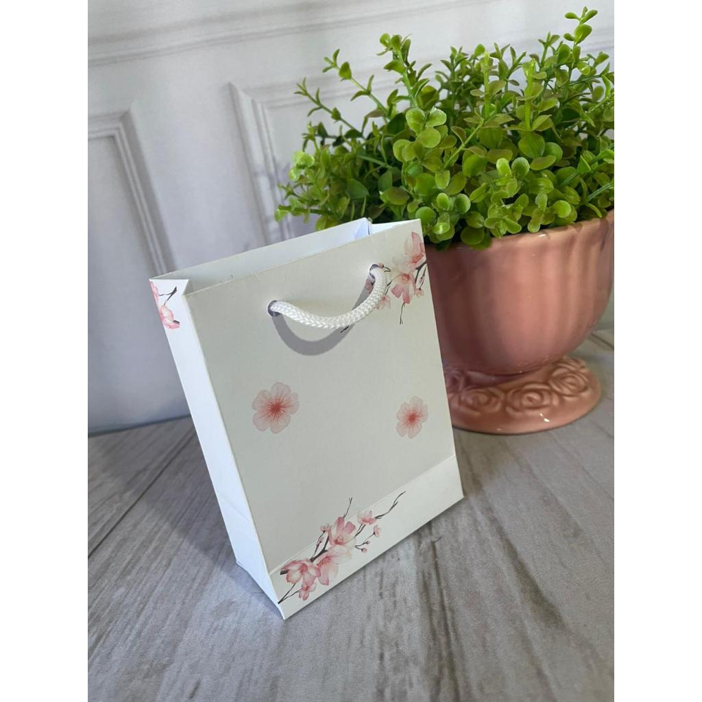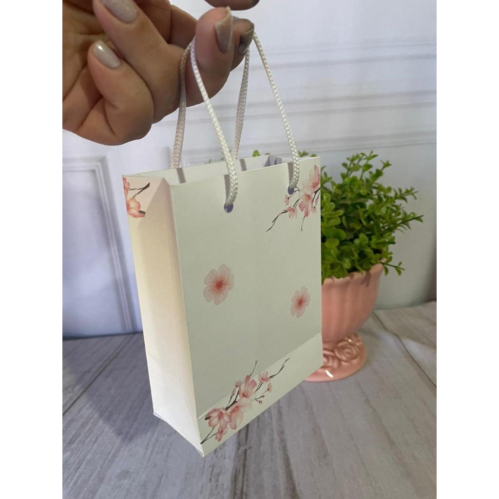 Mini Sacolinha Floral - 12x9x4 Cm (20 Unidades) - Sacola Papel Embalagem Bolsa Colorida Tam. PP