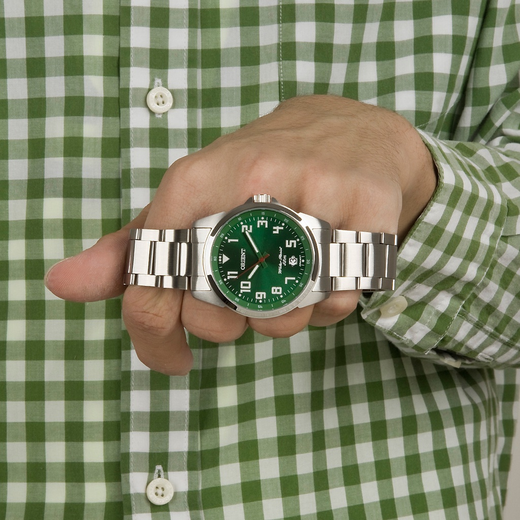 Relogio Masculino Orient Prata Fundo Verde MBSS1154A E2SX Original