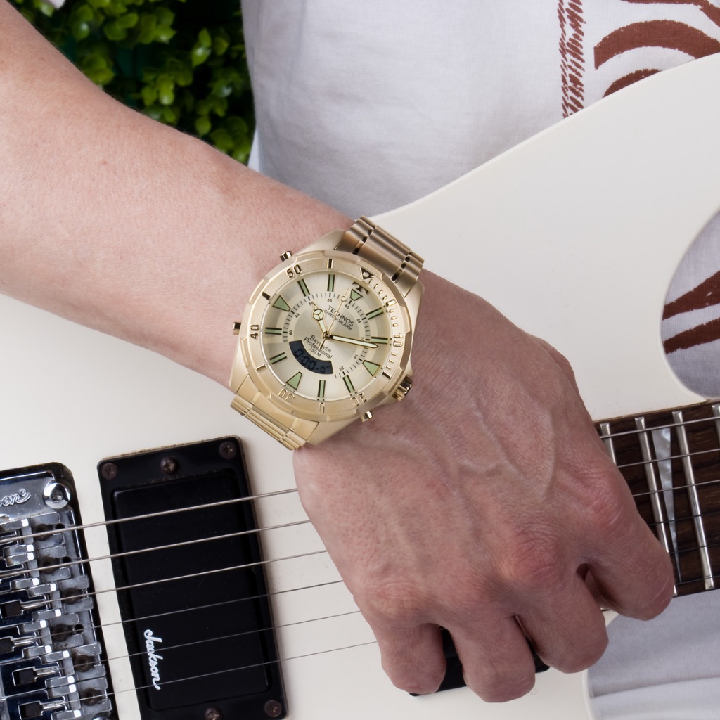 Relógio Masculino Technos Skydiver Dourado Original Tamanho Grande Analógico Digital WT2050AA/1D