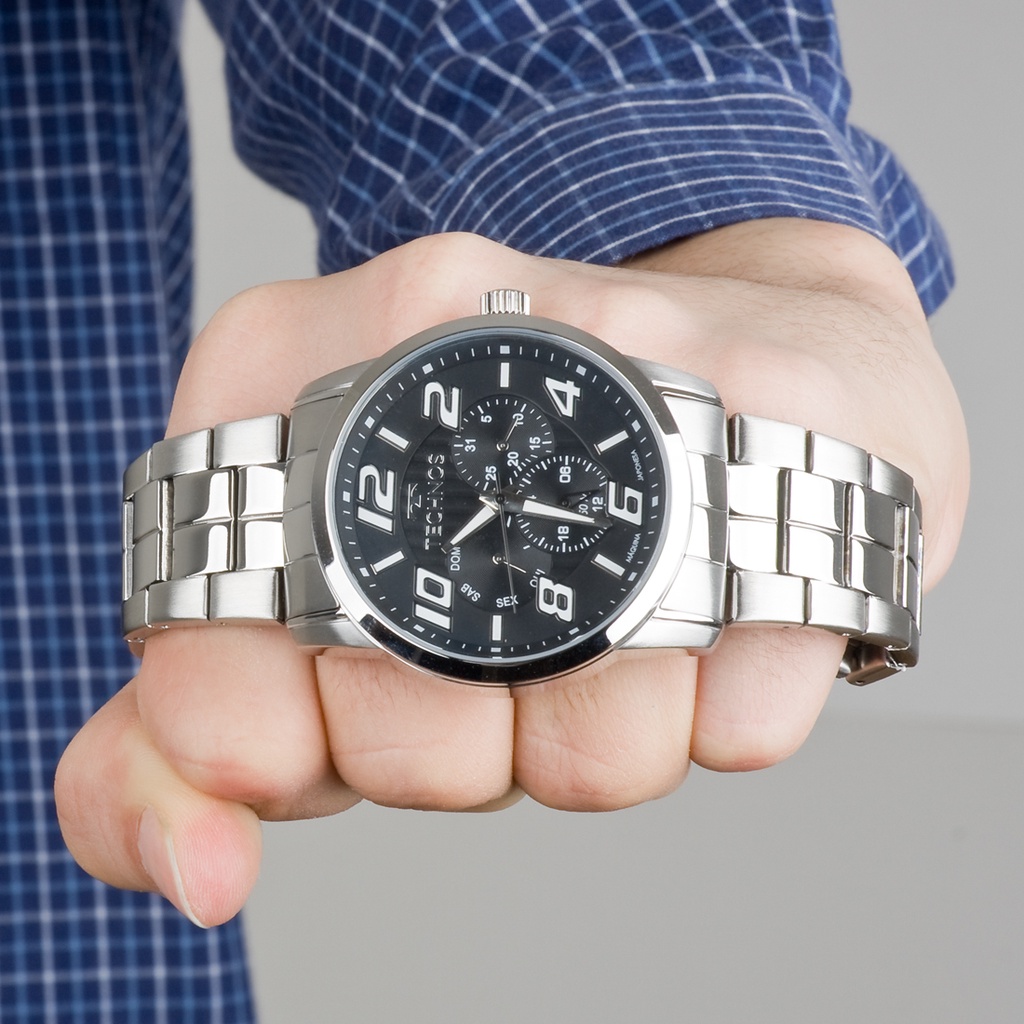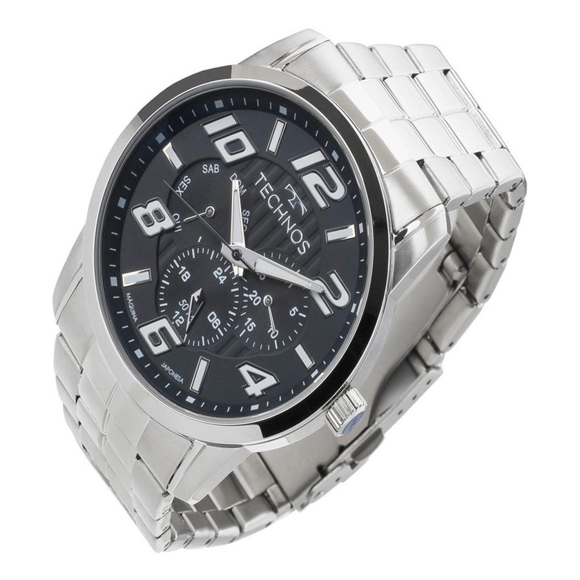 Relogio Technos Masculino Prata Fundo Preto 6p29afts/1p Original Presente Homens Marido Original com Garantia de 1 Ano