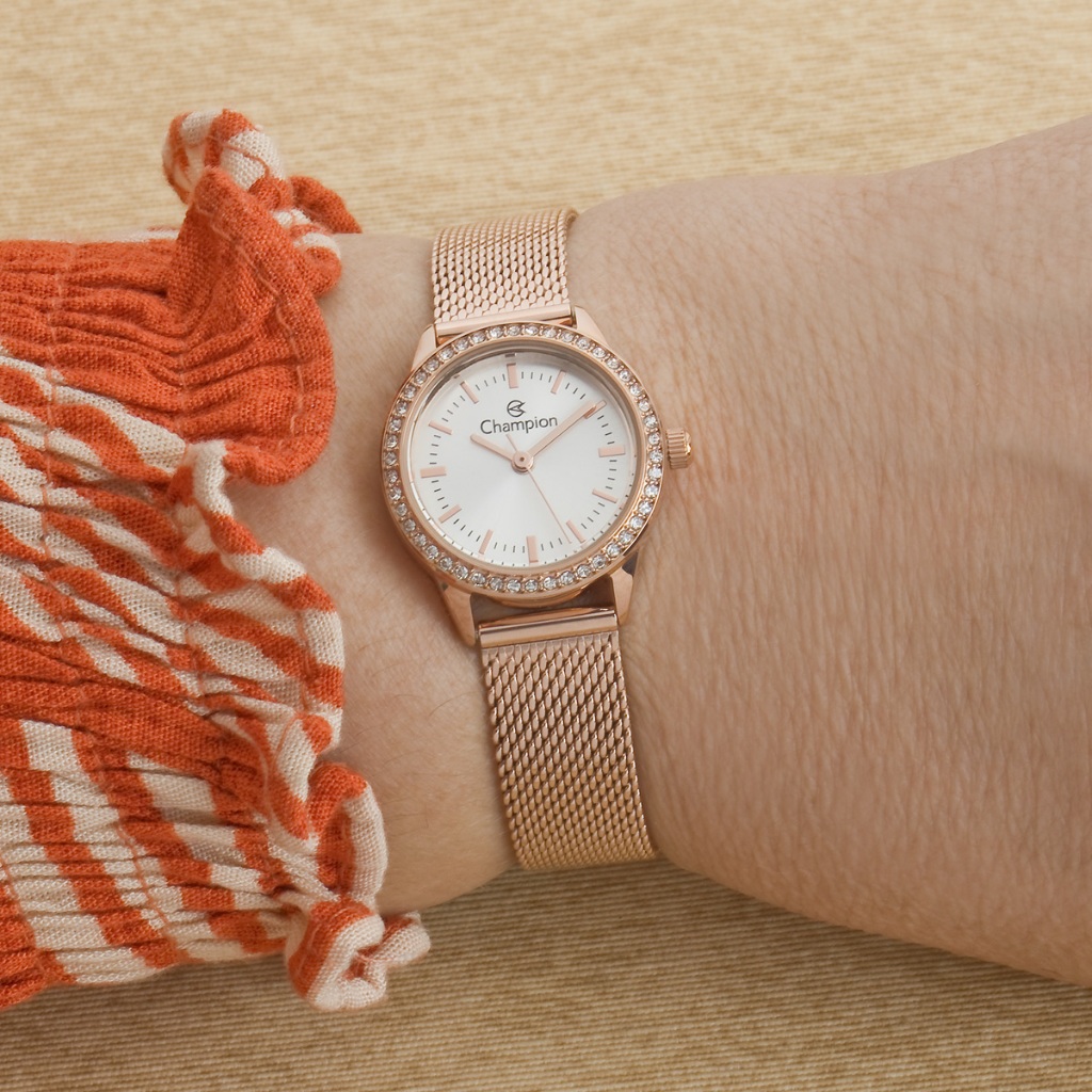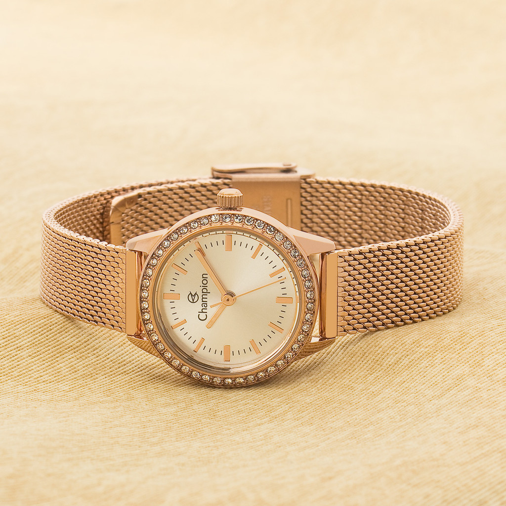 Relógio Pequeno Rose Champion Feminino Com Pedras Linha Luxo Original CF24902Z