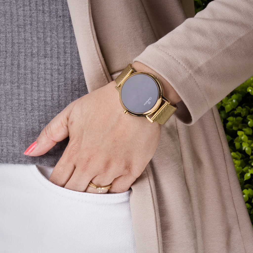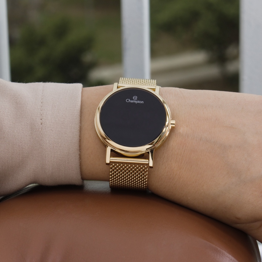 Relogio Feminino Digital Dourado Champion Led Vermelho Pulseira Leve Original Presente Mulher Esposa Namorada