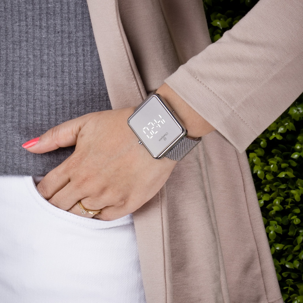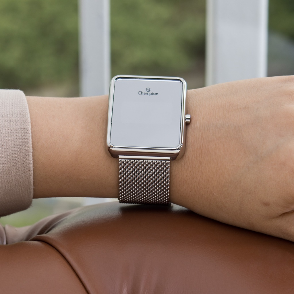 Relógio Champion Feminino Digital Espelhado Prata Original À Prova d'Água Presente Mulher Namorada Esposa Moda