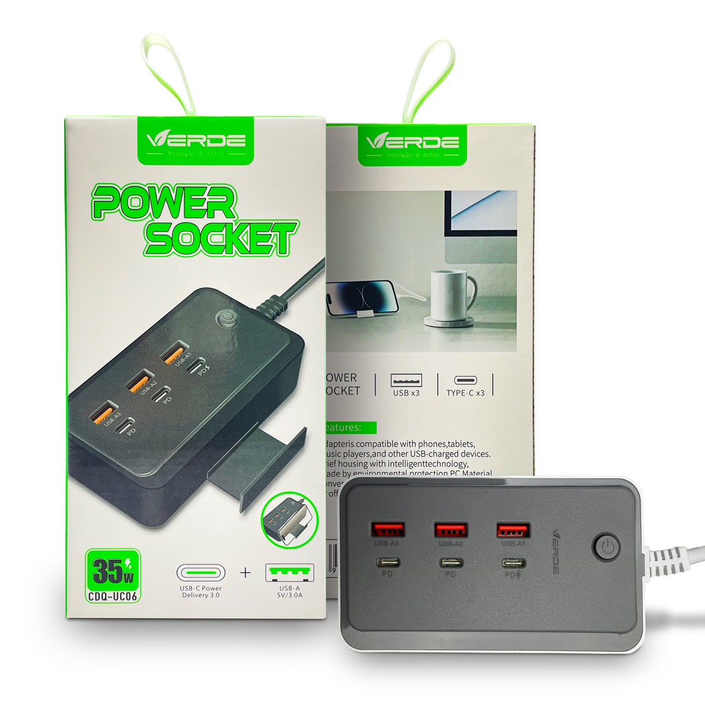 Adaptador Hub USB-A + USB-C PD - Carregador Multiportas para Notebook e Celular - Branco - Verde