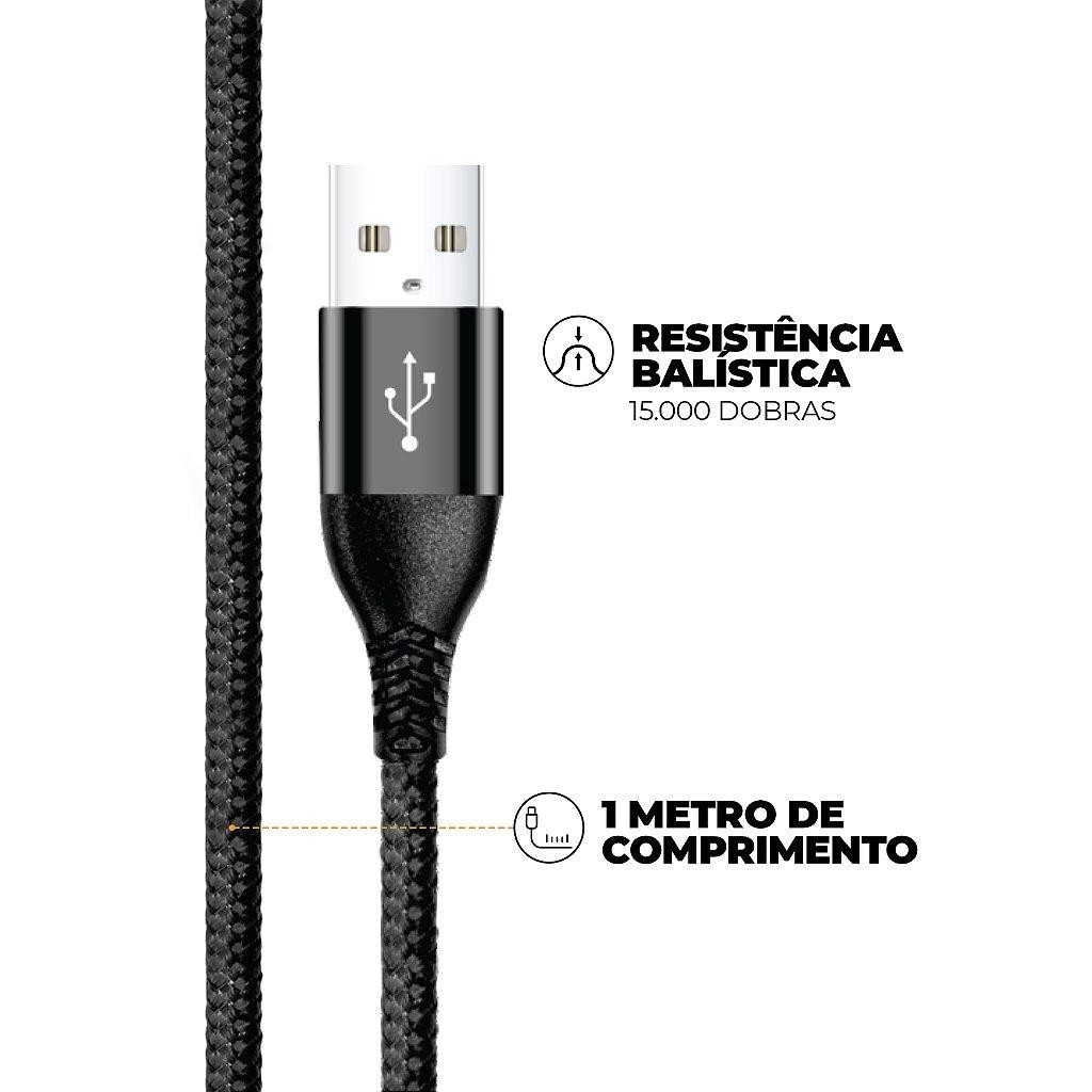 Cabo Raptor Gshield Tipo C / USB A 1m Nylon Balístico Turbo Proteção Inteligente p/ Android e iPhone