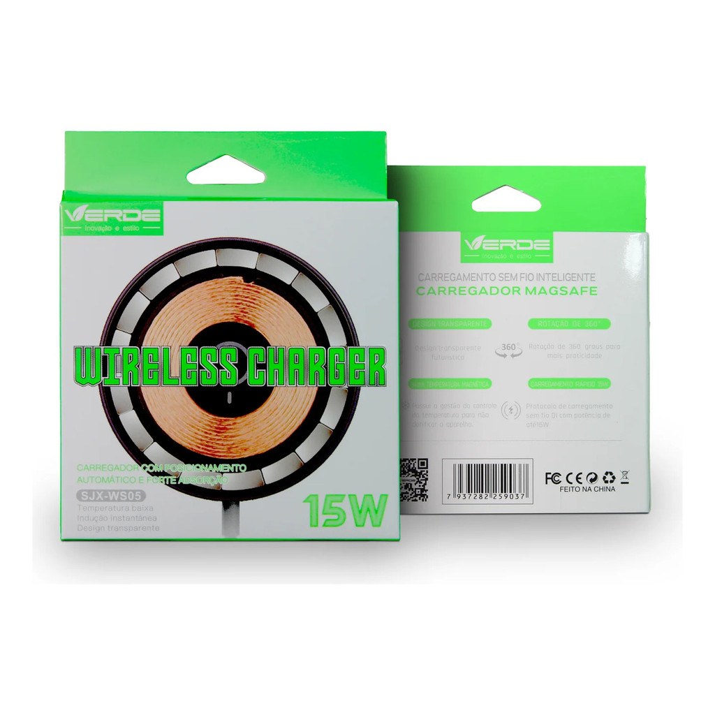Carregador Wireless por Indução 15W Verde – Rápido, USB-C, iPhone 11 a 15, Design Premium