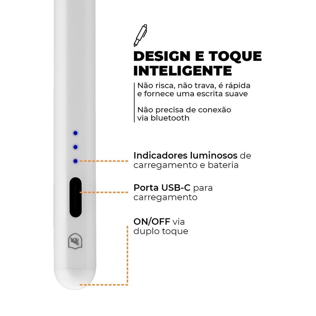 Caneta Touch Screen Capacitiva Pro Ponta Fina Para iPad Com Palm Rejection Traço Adaptável