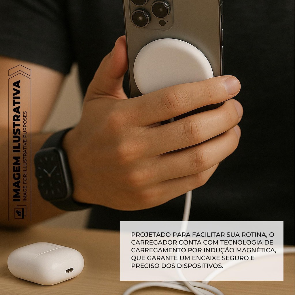 Carregador 15W Indução Magnética 3 em 1 Gshield Discovery: Compativel iPhone, Apple Watch e AirPods