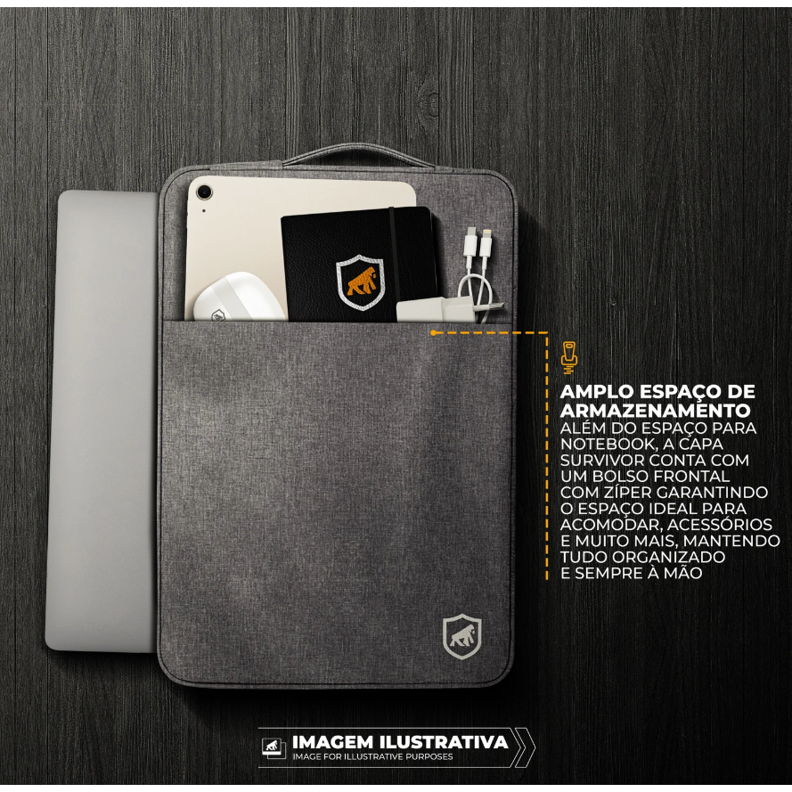 Capa Case Survivor Aveludada para Notebook Universal com Alça e Bolso Externo Com Zipper - Gshield