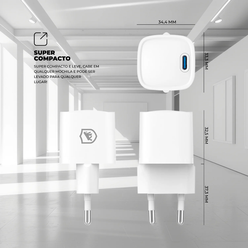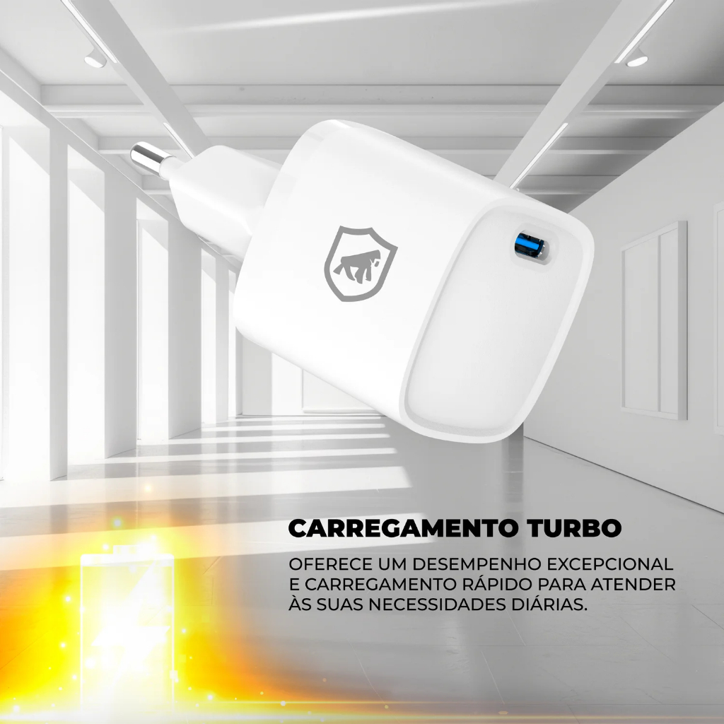 Carregador De Parede Turbo Super Rápido Gan Ultra Slim Tipo C 20w Compatível C/ iPhone E Android