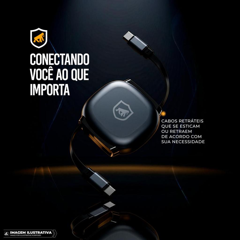 Cabo Retrátil Tipo C / Tipo C 100W 1m - Victus - Preto - Gshield