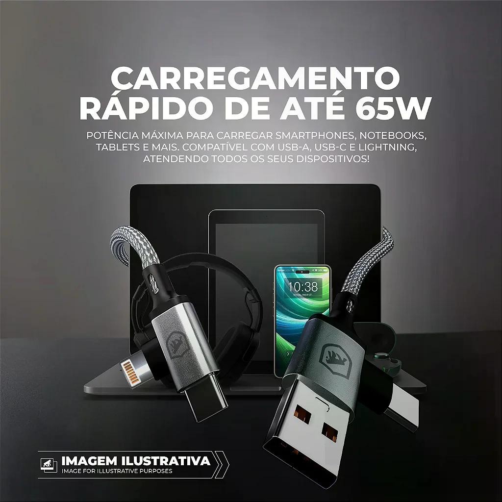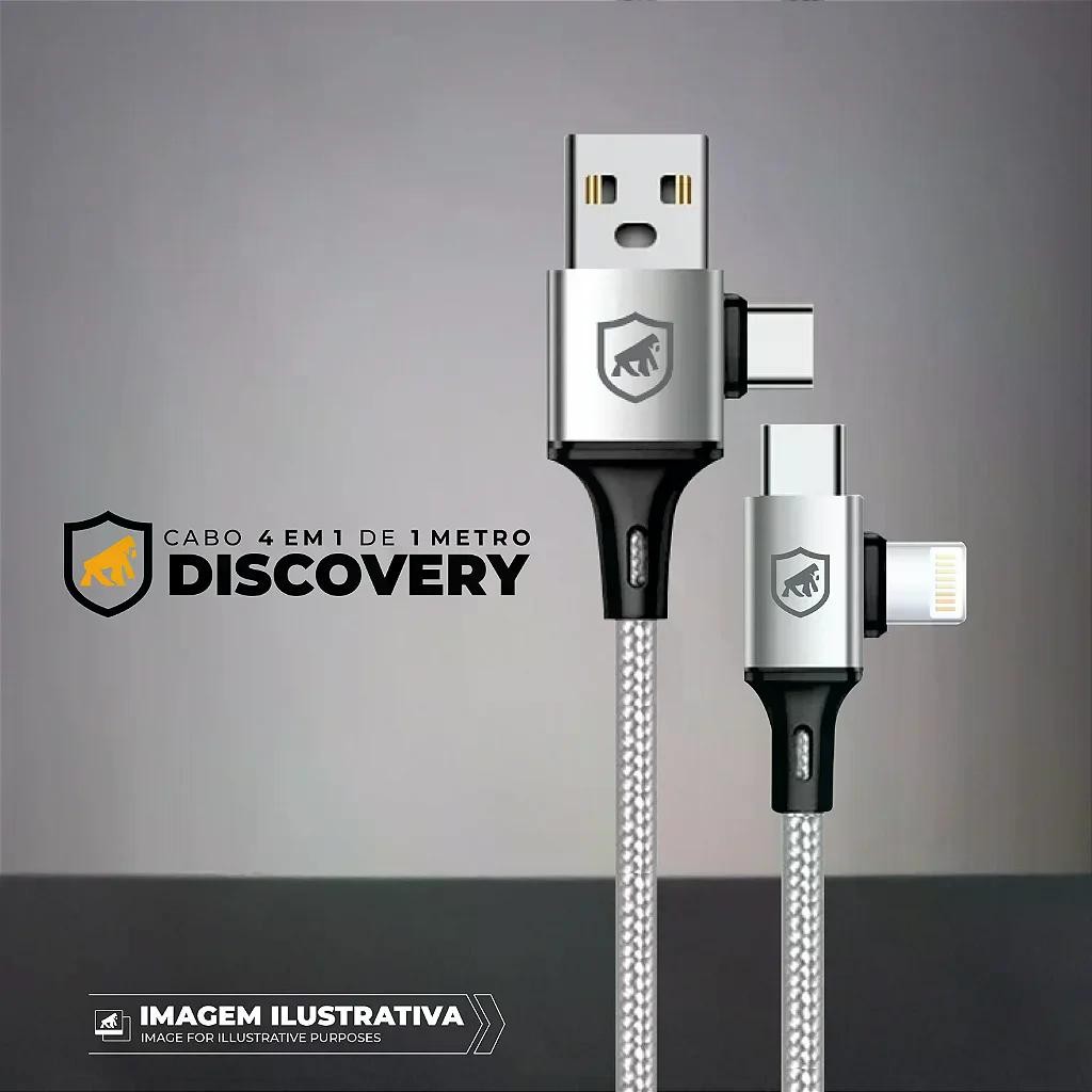 Cabo 4 em 1 - Carregamento Rápido 65W - USB-A, Tipo-C e Lightning - 1M - Discovery - Gshield