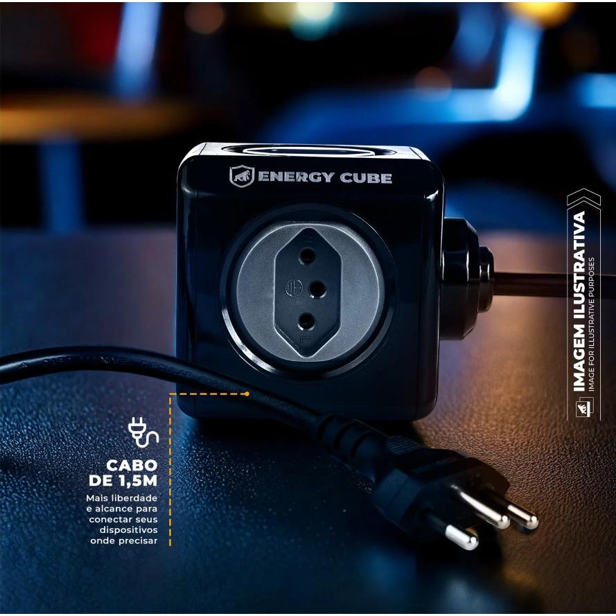 filtro de linha Adaptador Extensão Benjamin Bivolt 5 Tomadas com Cabo 1,5M Gshield Energy Cube Preto Inmetro