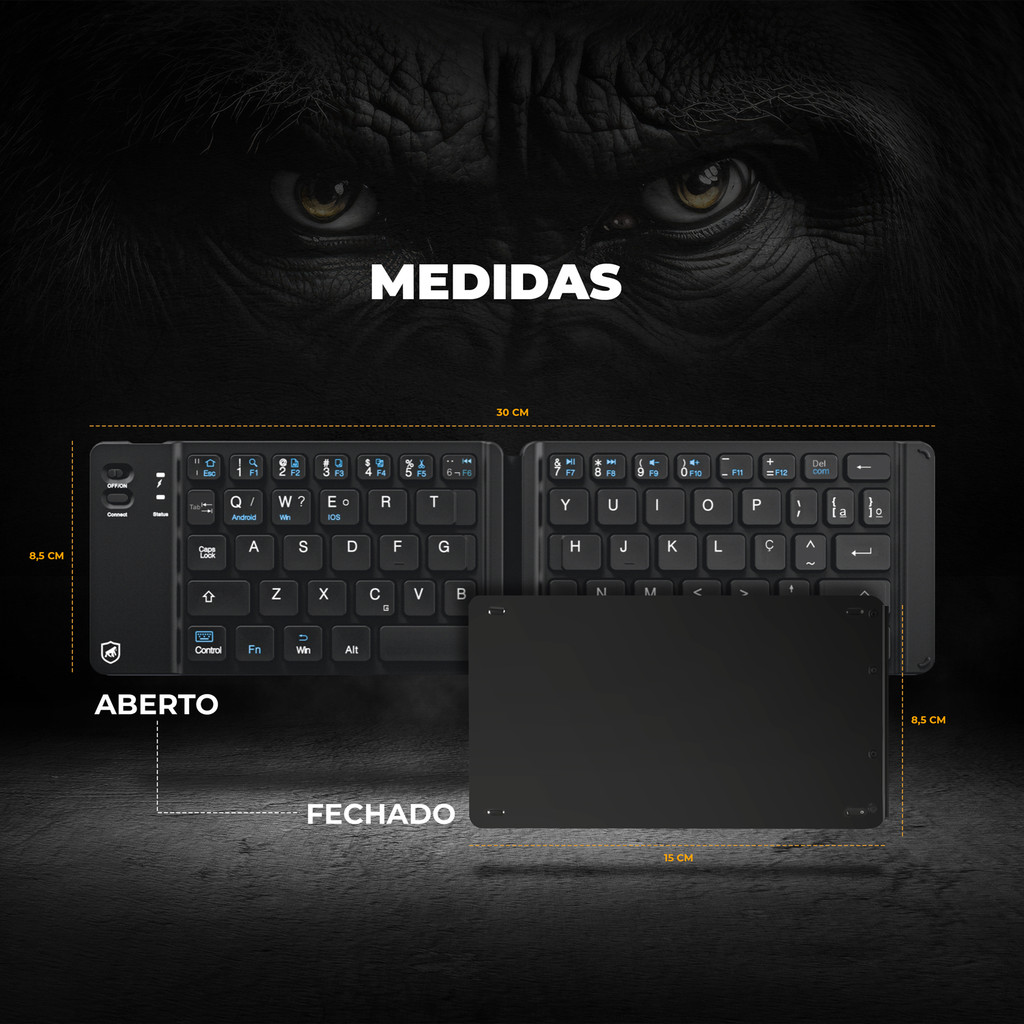 Mini Teclado Sem Fio Gshield Armor - Dobrável, Bluetooth e Compatível com Android, iPhone, iPad e PC