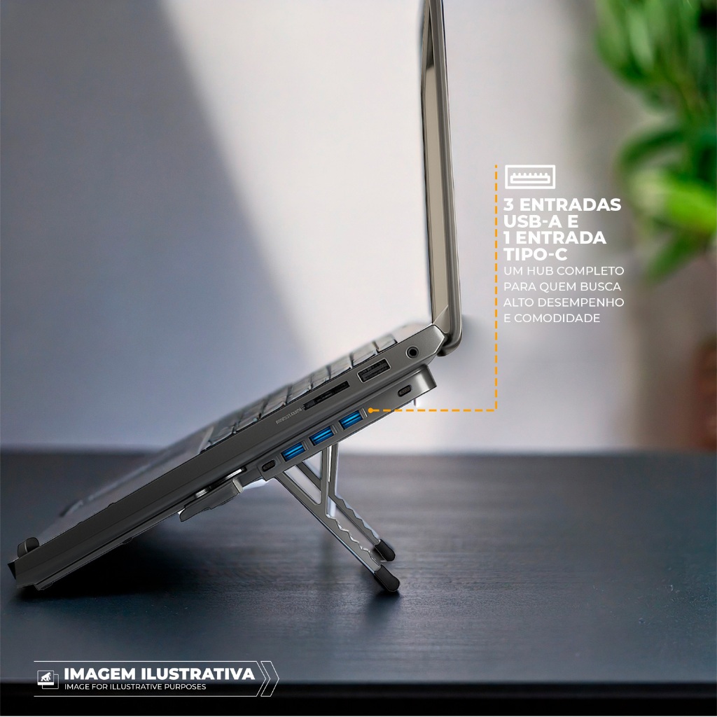 Suporte Dobrável para Notebook com 3 Entradas USB 3.0 e Tipo C - 6 Níveis de Altura Premium- Gshield