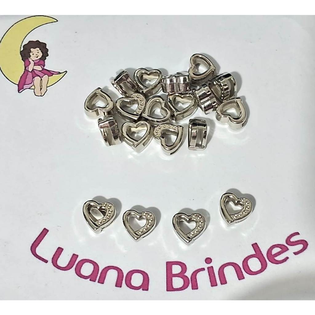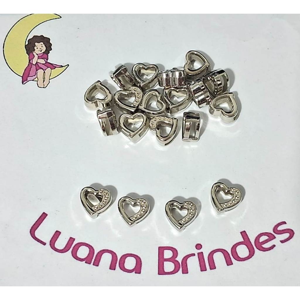 Coração ABS Furo Passante Prata Pacotes Com 30/50 /75/100 Unidades