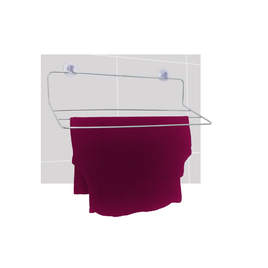 Varal De Parede Reforçado feito de aço Cromado Aramado Com Ventosa Sem Furos
