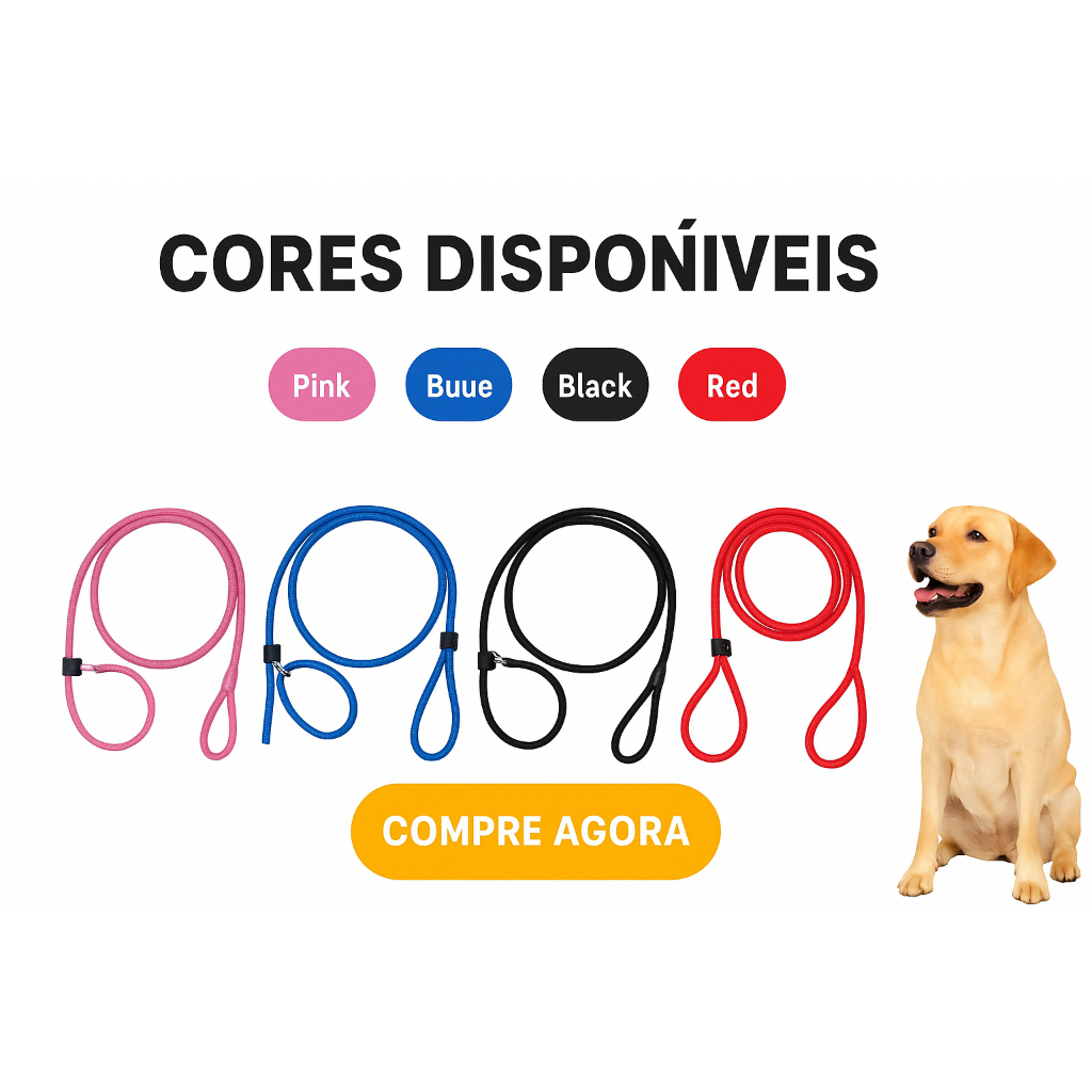 Guia Unificada 2m para Adestramento Corda Resistente Anti Puxão para Cães Pequenos, médios e Grandes