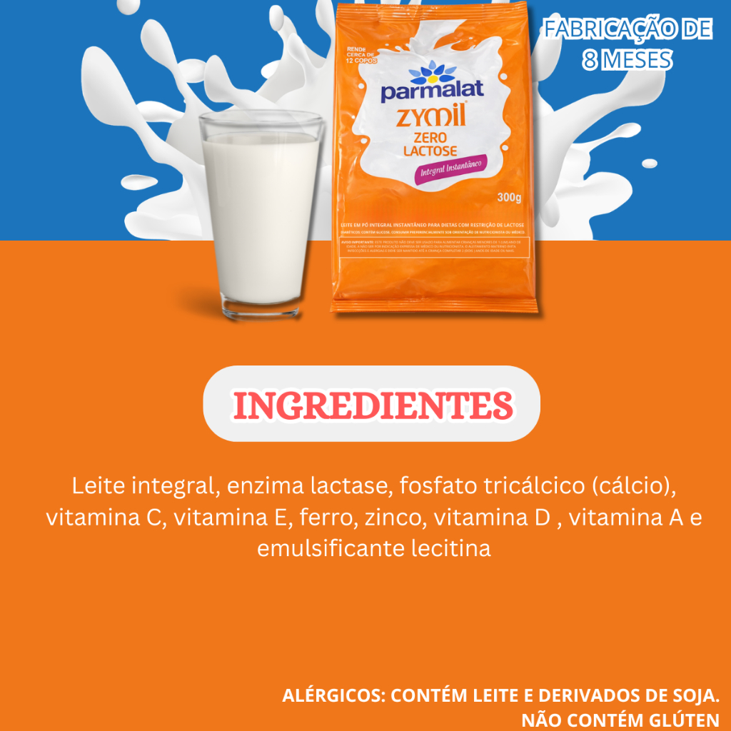 Leite Pó Instantâneo Zero Lactose Sem Gluten Parmalat Zimyl Parmalat Max Pacote 300g